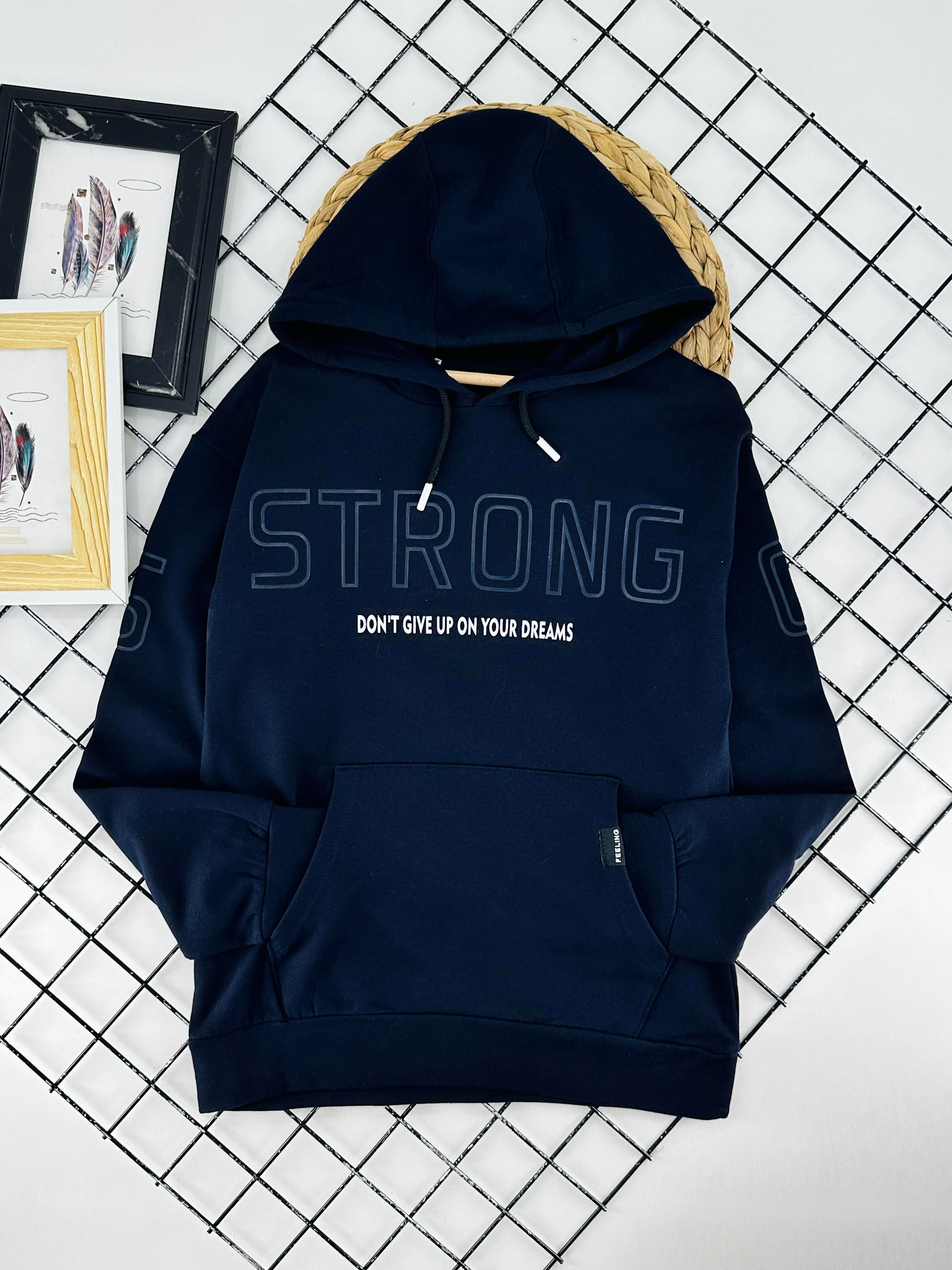 424511 Strong Yazılı Kanguru Cepli Erkek Çocuk İki İp Sweat-LACİVERT 424511 Strong Yazılı Kanguru Cepli Erkek Çocuk İki İp Sweat-GRİ