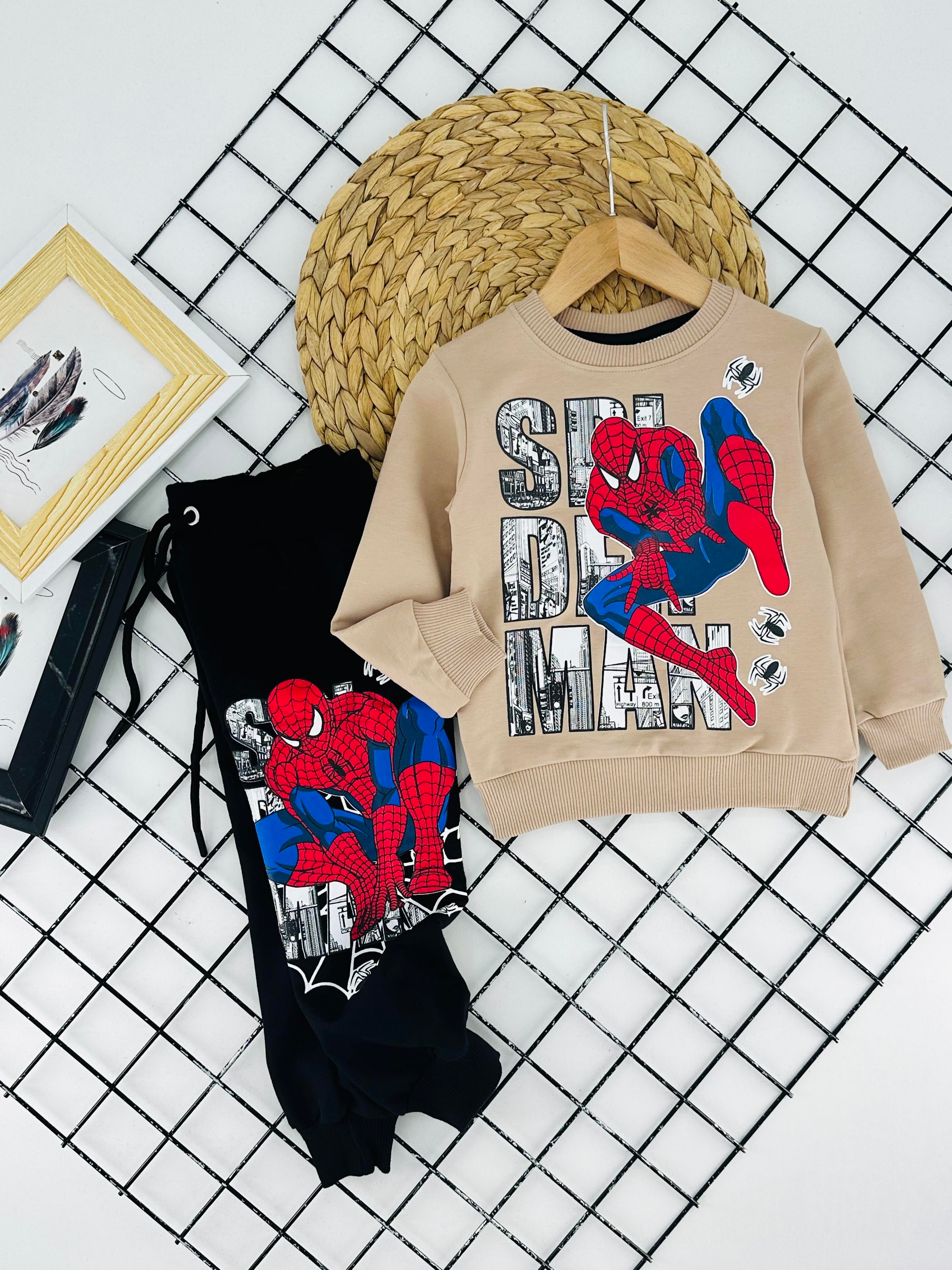 4464-1 Spdm Yazılı Baskılı İki İplik Erkek Takım-BEJ