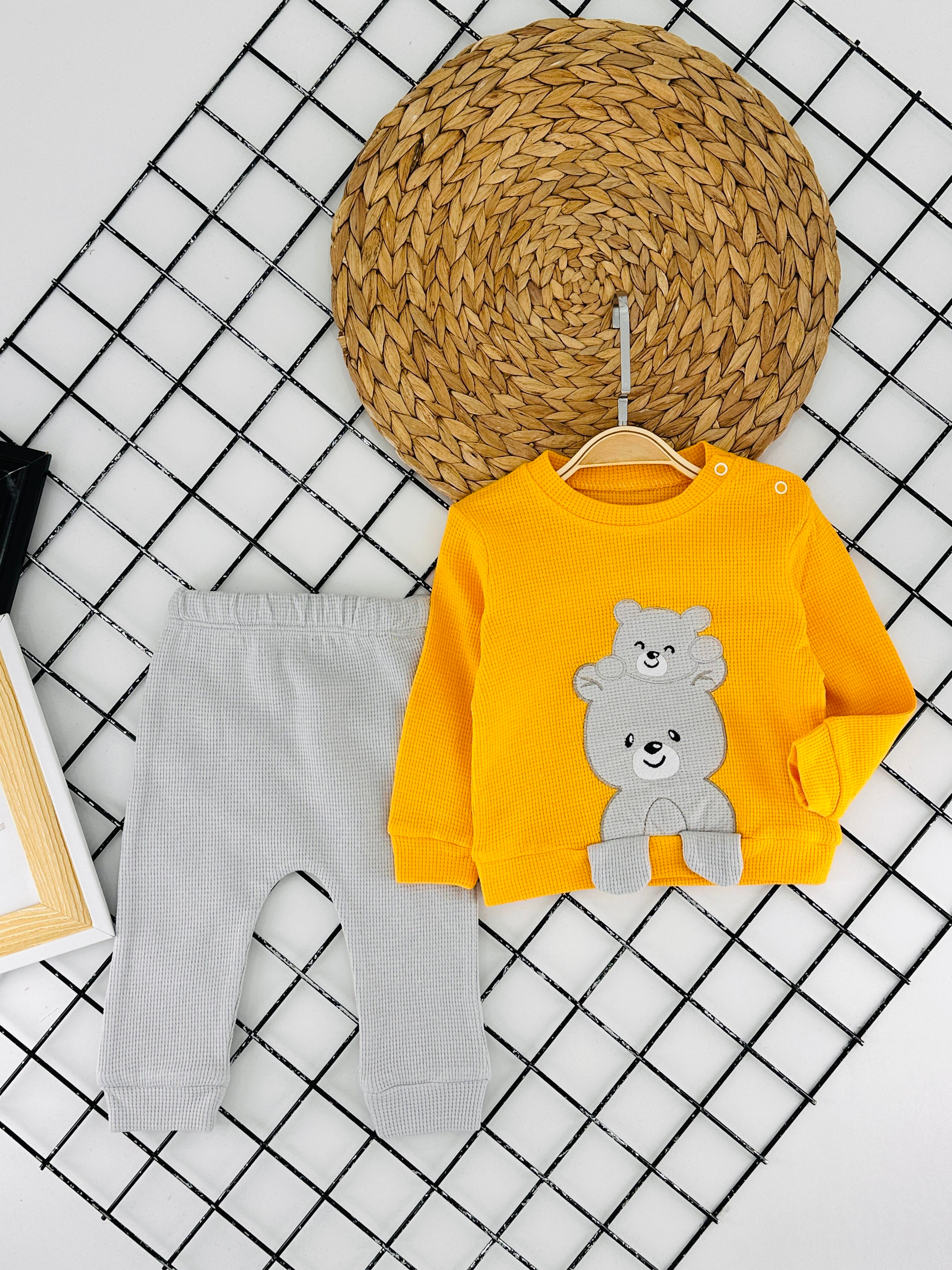 473 Ayıcık Nakışlı Erkek Bebek Takım-SARI