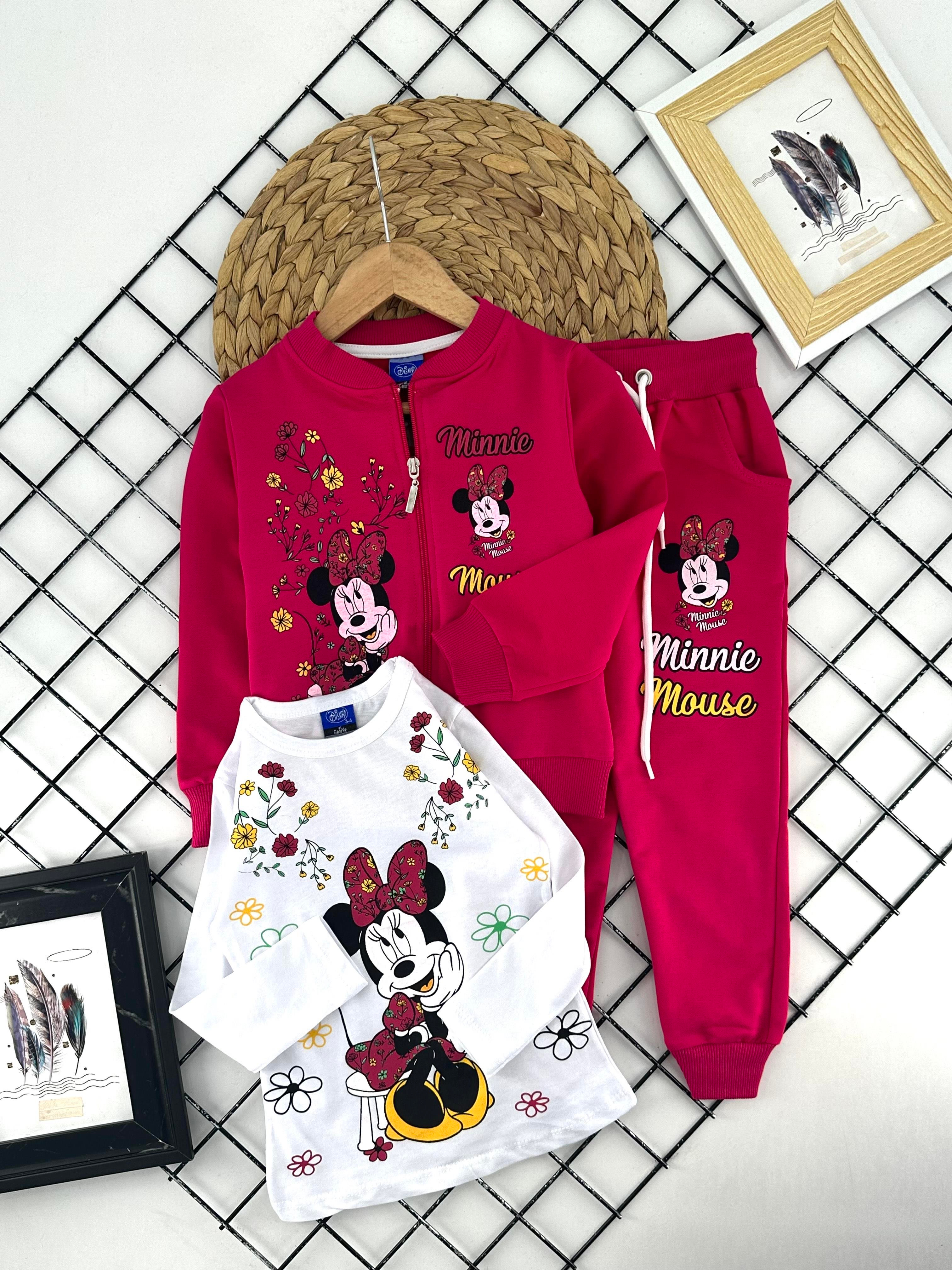5454 Mn Ms Baskılı Üçlü Kız Çocuk Penye Takım-FUŞYA