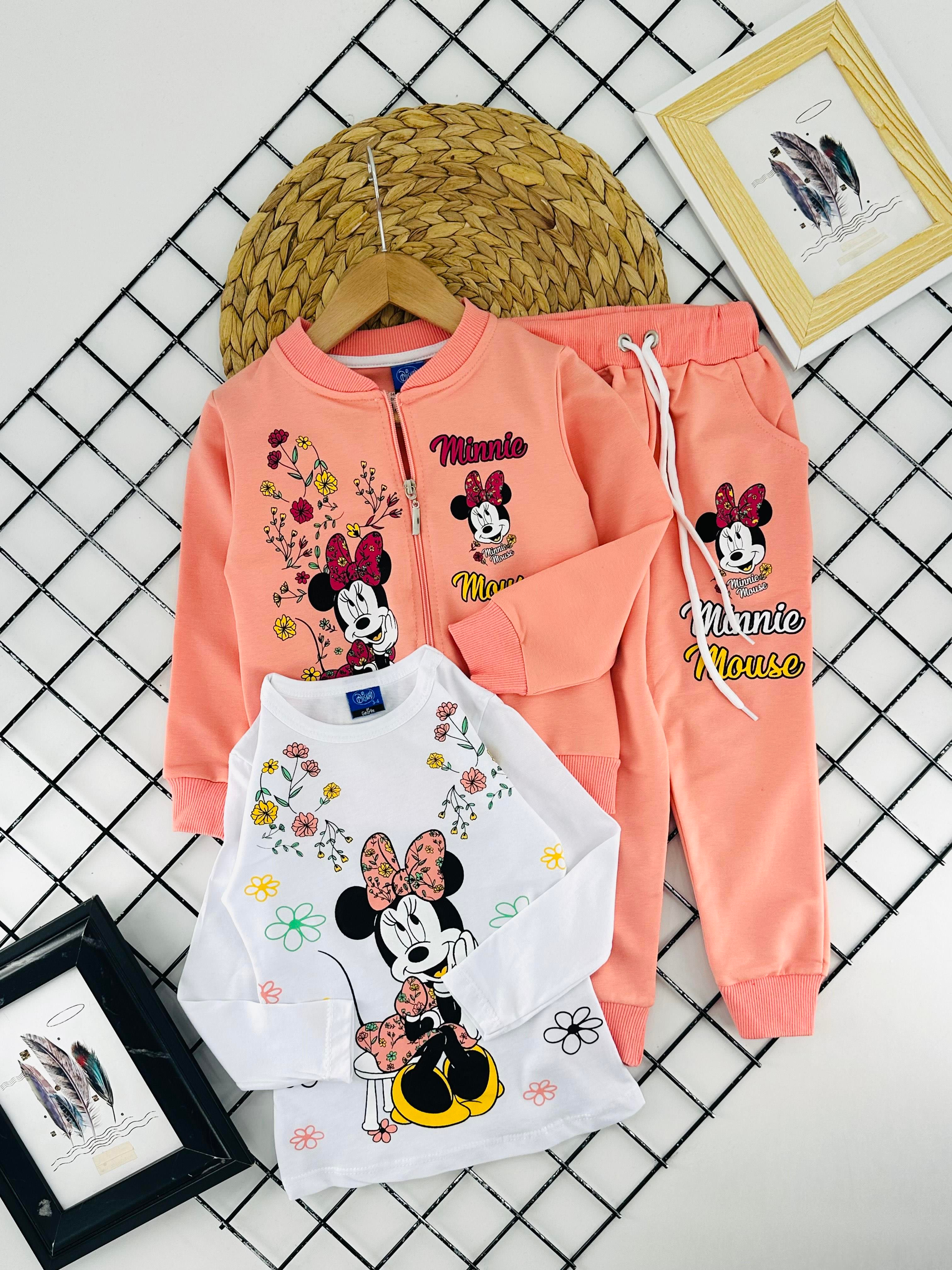 5454 Mn Ms Baskılı Üçlü Kız Çocuk Penye Takım-SOMON