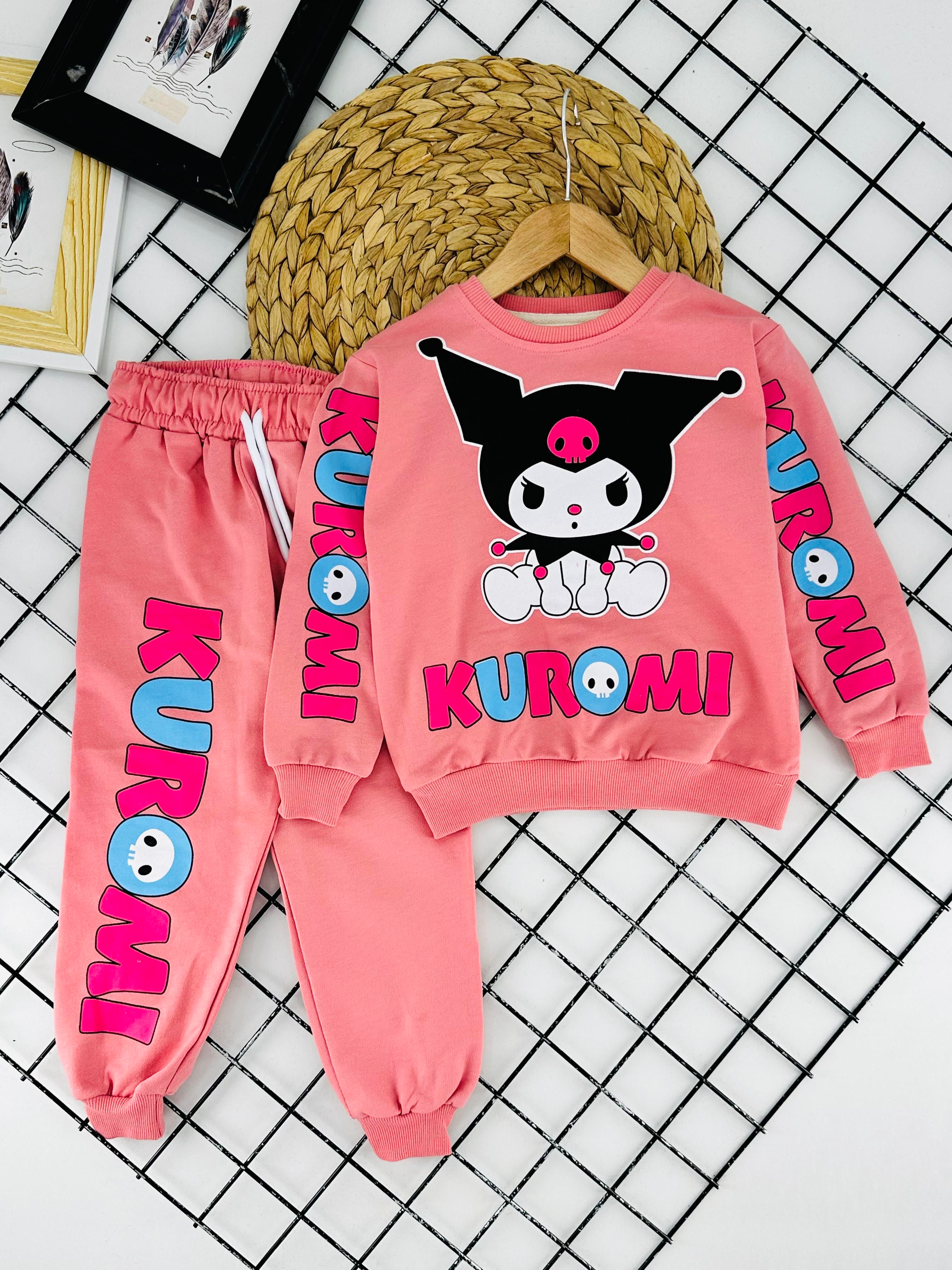 57055 Krm Baskılı Yazılı Kız Çocuk İki İplik Penye Takım-PUDRA