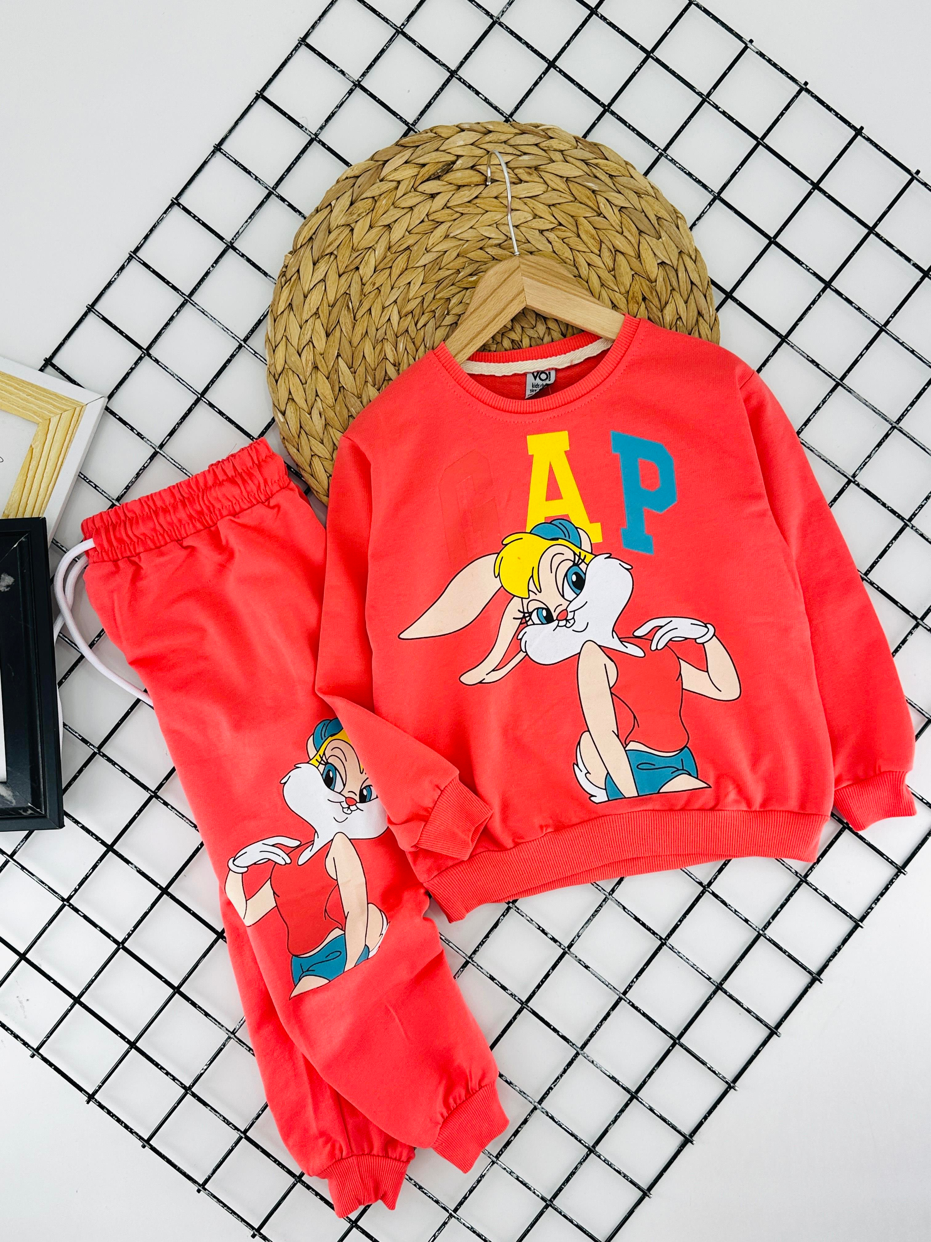 57060 Gp Bunny Yazılı Baskılı Kız Çocuk İki İplik Penye Takım-NAR ÇİÇEGİ