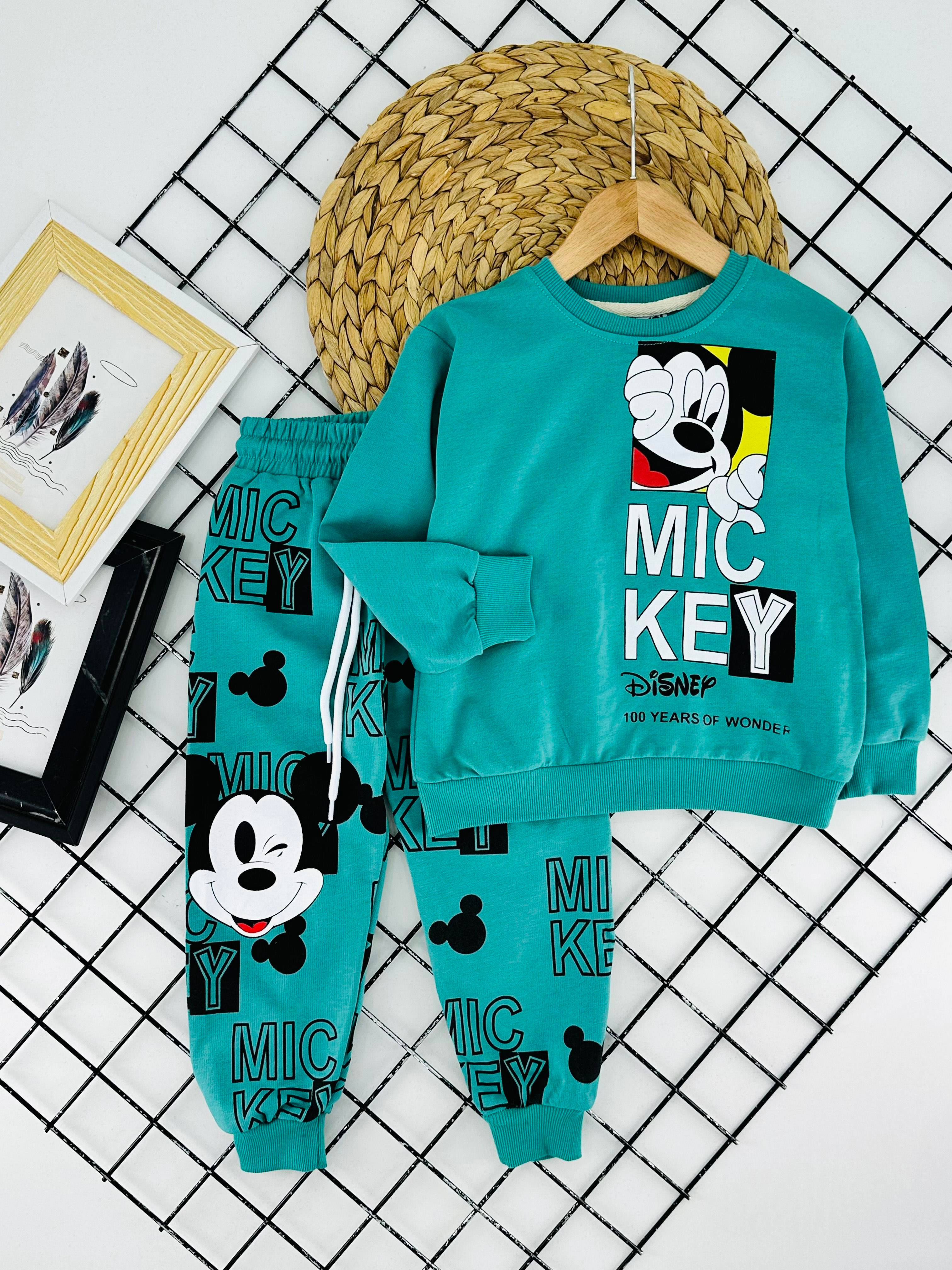 57067 Mcky Yazılı Baskılı Erkek Çocuk İki İplik Penye Takım-YEŞİL