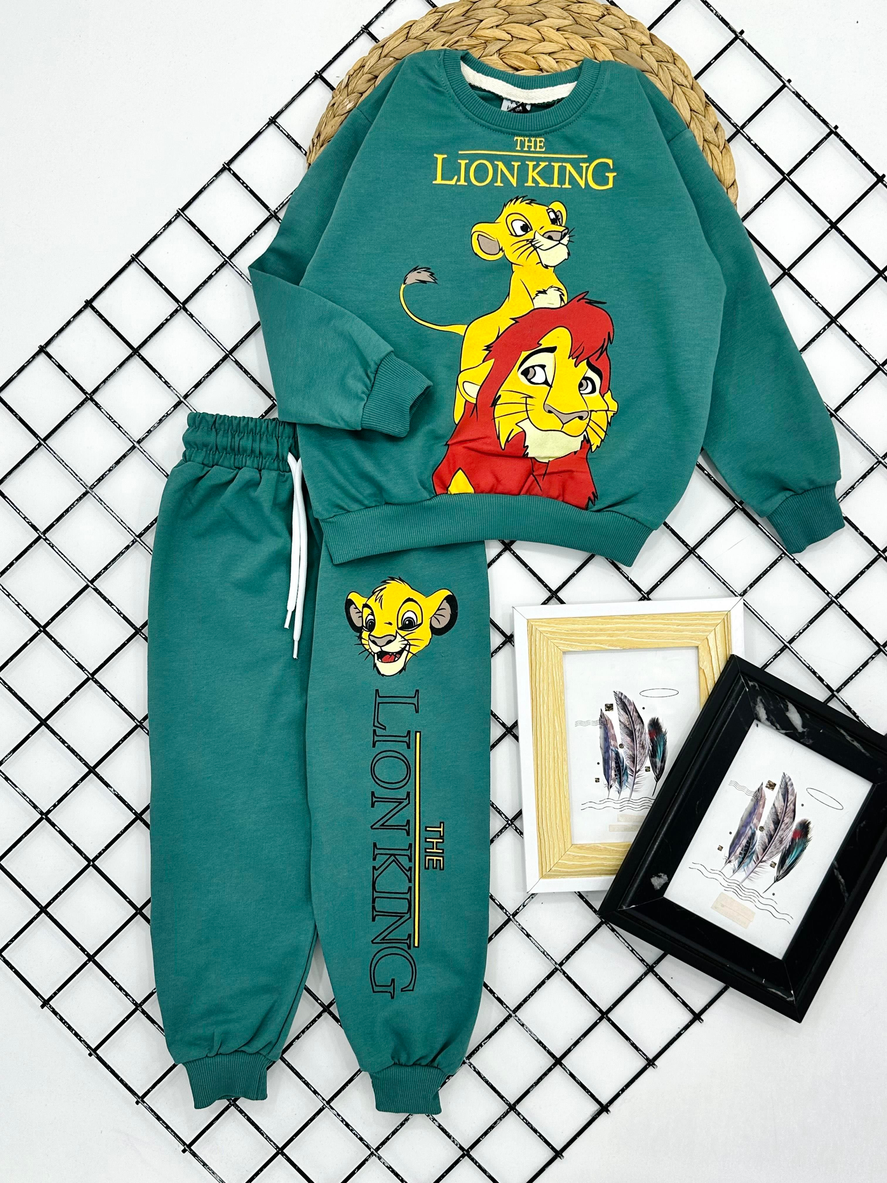57070 Ln Kng Aslan Baskılı Erkek Çocuk Penye İki İplik Takım-YEŞİL
