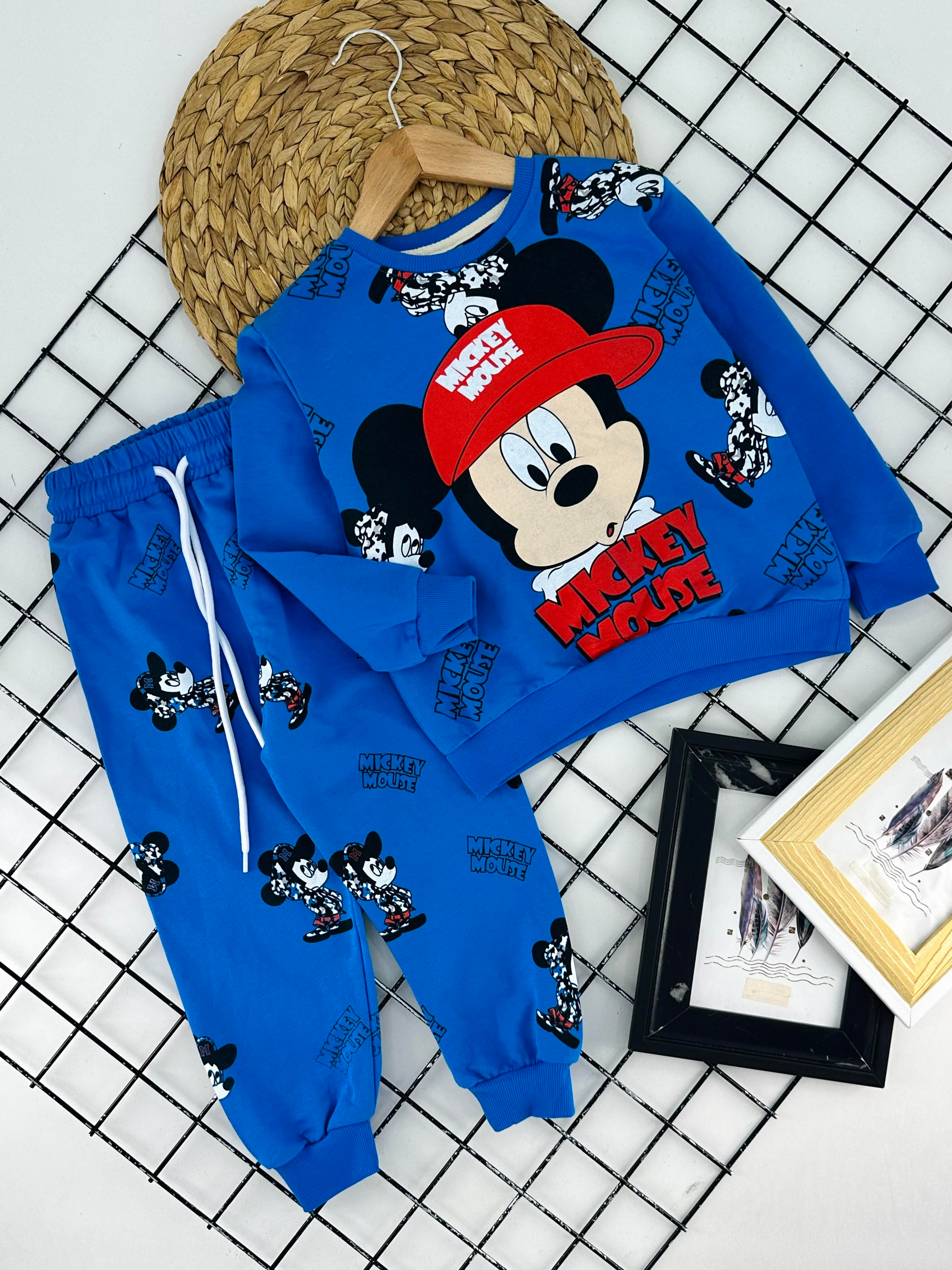 57071 Mcky Msu Yazılı Baskılı İki İplik Penye Erkek Çocuk Takım-MAVİ