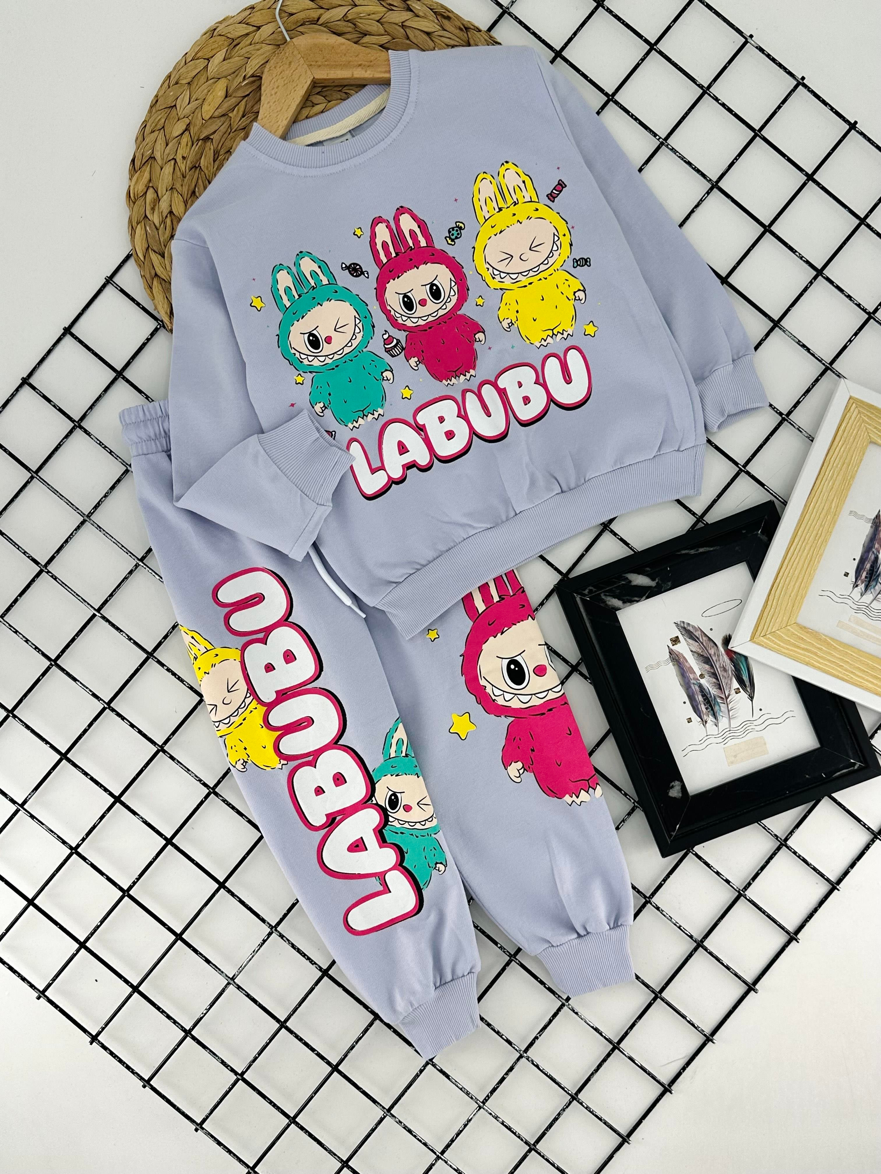57097 Üç Lbb Baskılı Kız Çocuk İki İplik Penye Takım-BUZ MAVİ