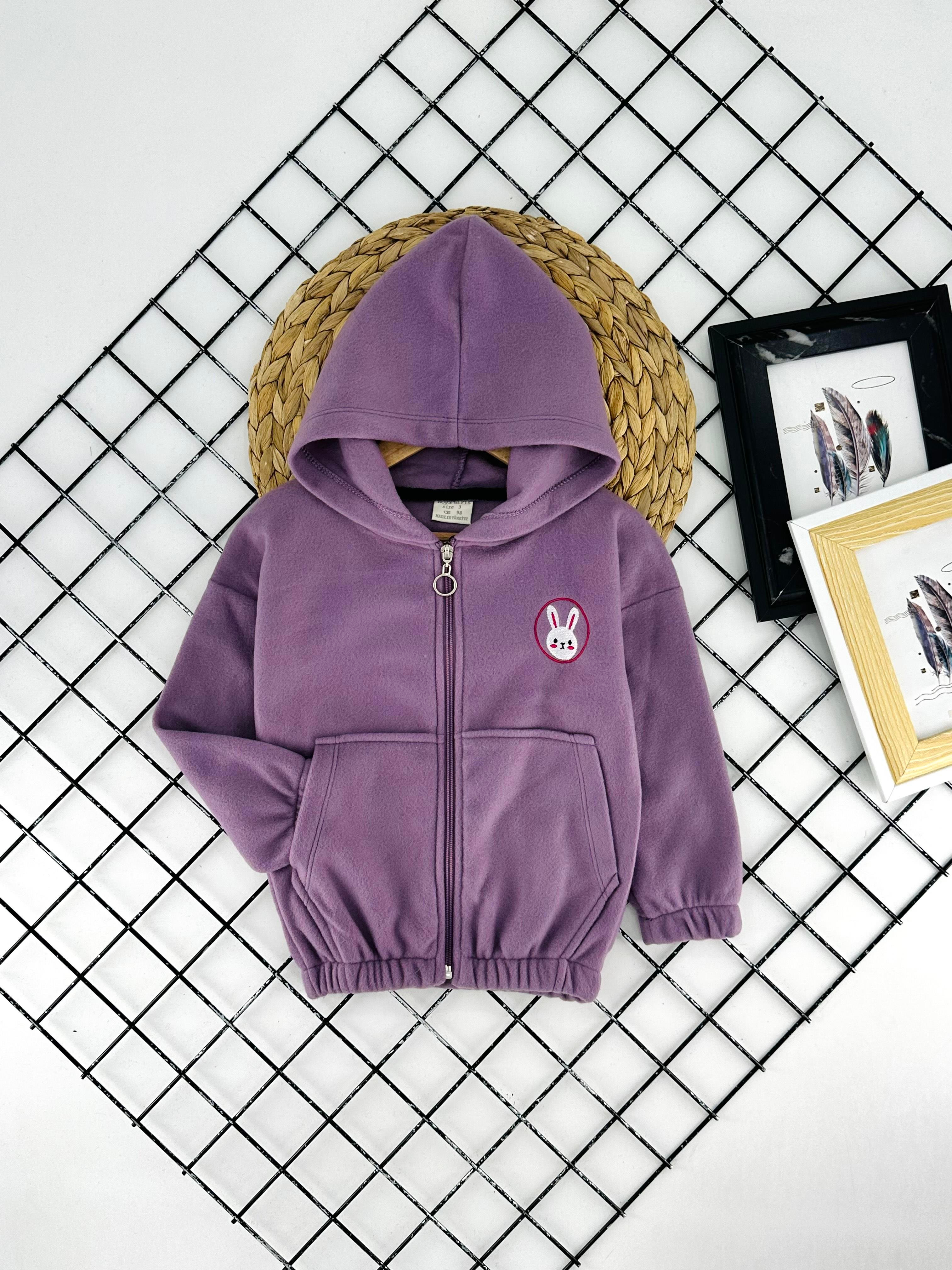 6130 Tavşan Nakışlı Kız Çocuk Polar Hırka-LİLA