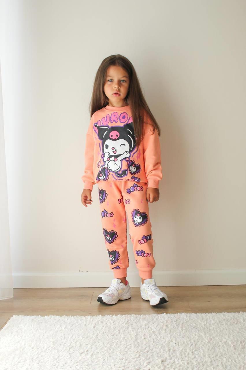 6229 Krm Baskılı Yazılı Kız Çocuk Şardonsuz 3 İplik Takım-SOMON