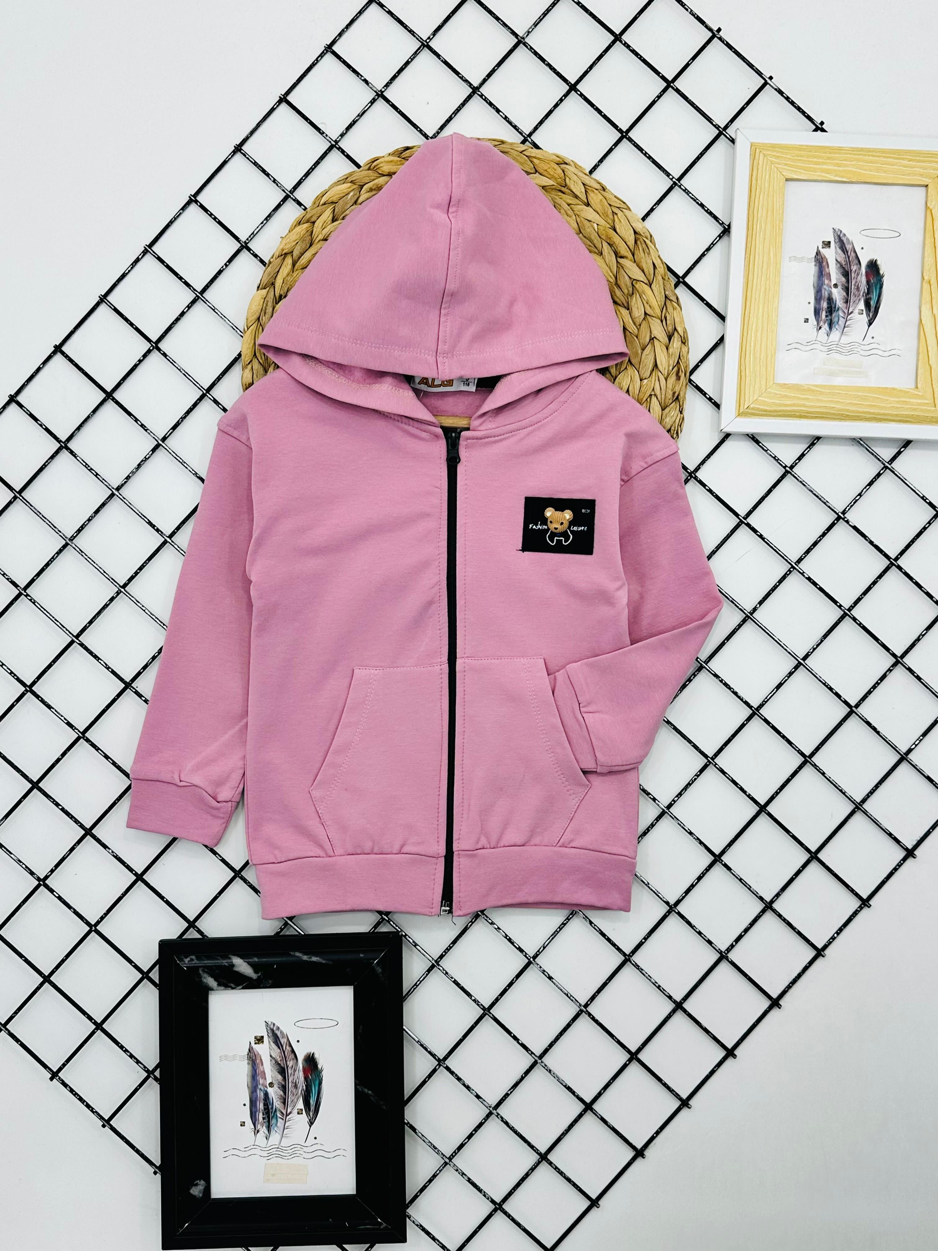 624493 Kanguru Cepli Ayıcık Detaylı Kız Çocuk İki İplik Hırka-LİLA 624493 Kanguru Cepli Ayıcık Detaylı Kız Çocuk İki İplik Hırka-GÜL KURUSU