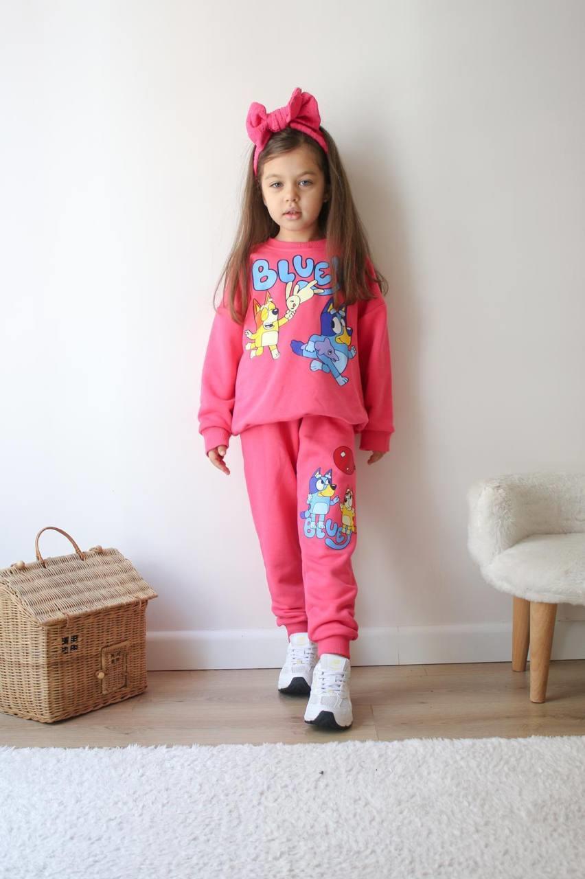 6251 Bluey Baskılı Yazılı Kız Çocuk Şardonsuz 3 İplik Takım-FUŞYA
