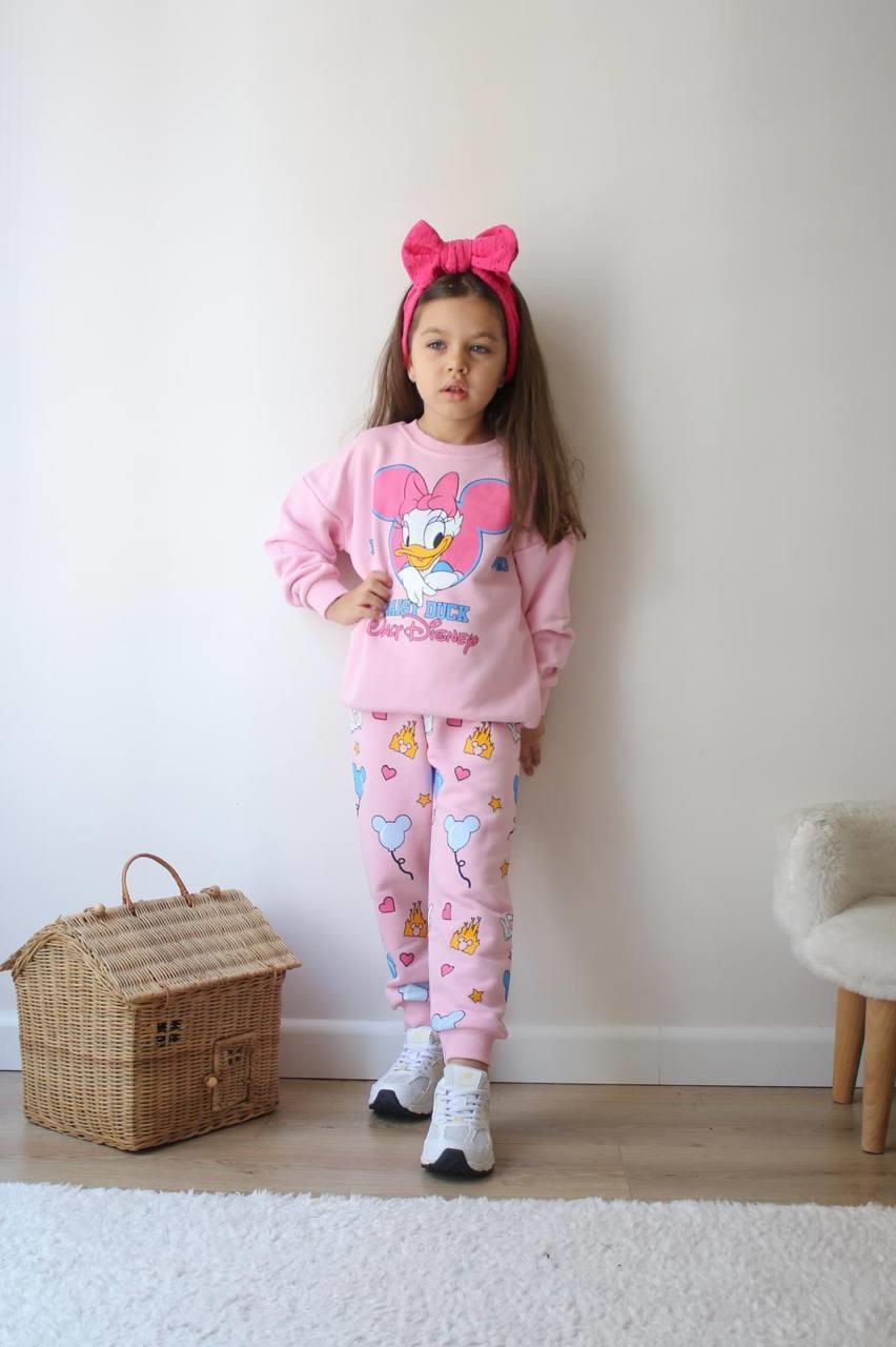 6252 DFfy Dck Baskılı Est Yazılı Kız Çocuk Şardonsuz 3 İplik Takım-PEMBE