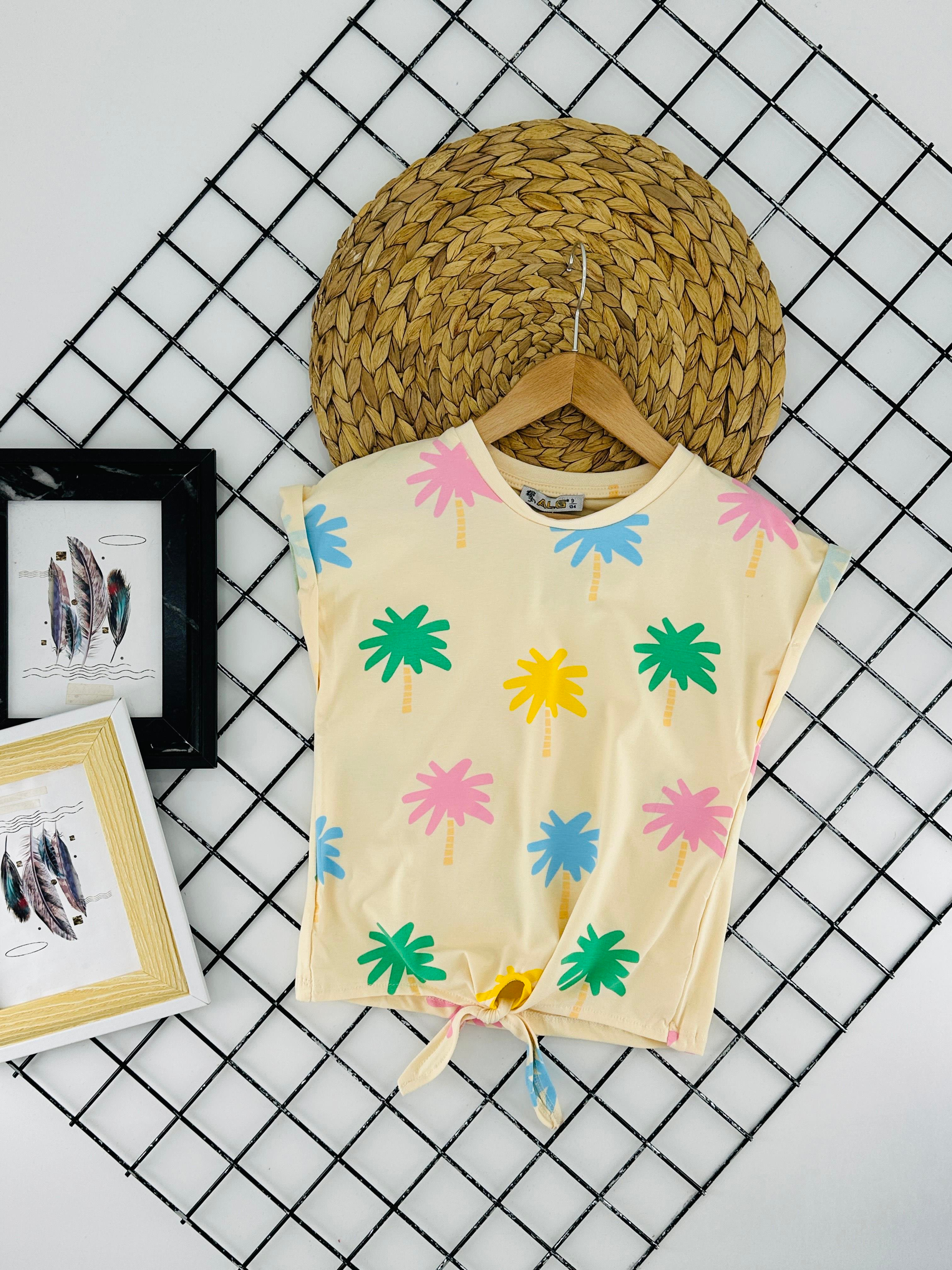 6254036 Palmiye Metraj Baskılı Kız Çocuk Penye Tişört-KREM 6254036 Palmiye Metraj Baskılı Kız Çocuk Penye Tişört-YEŞİL