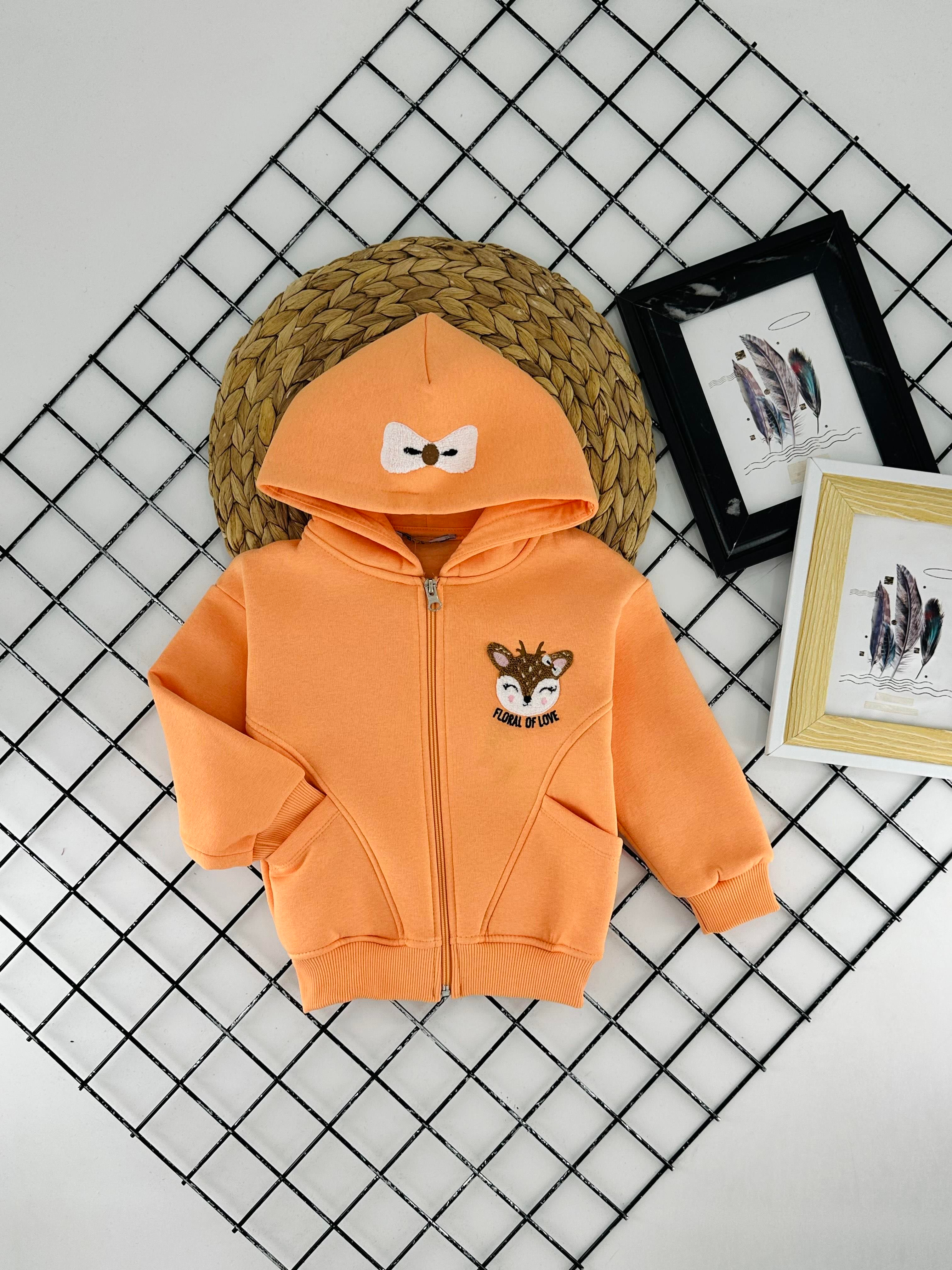 625547 Floral Kedi Nakışlı Kız Çocuk Kapşonlu İki İplik Hırka-KAVUN İÇİ 625547 Floral Kedi Nakışlı Kız Çocuk Kapşonlu İki İplik Hırka-KREM