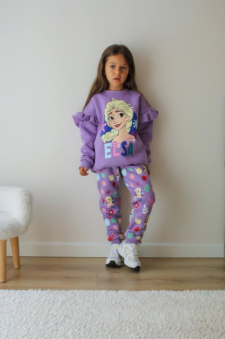 6302 Els Çiçek Baskılı Kız Çocuk Şardonlu Üç İplik Takım-LİLA