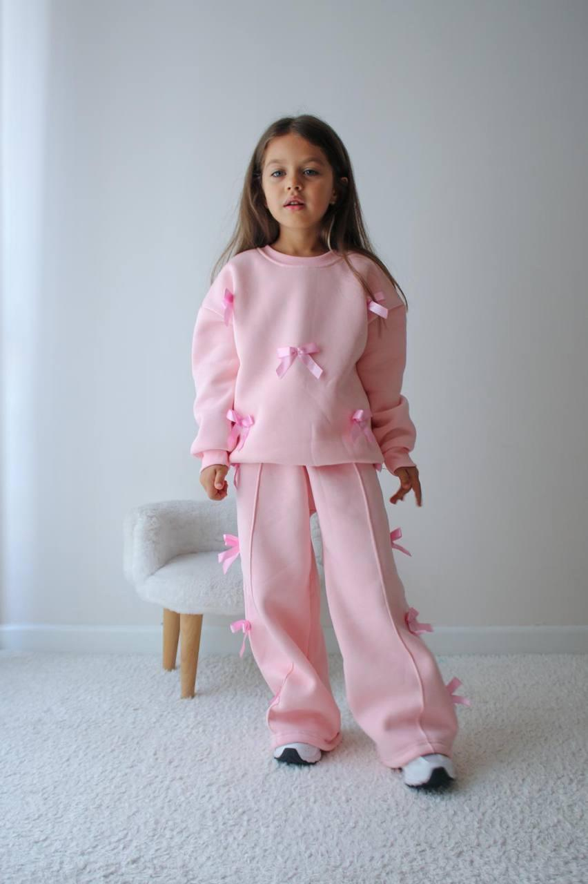6351 Fiyonk Detaytlı Kız Çocuk Üç İplik Şardonlu Takım-PEMBE