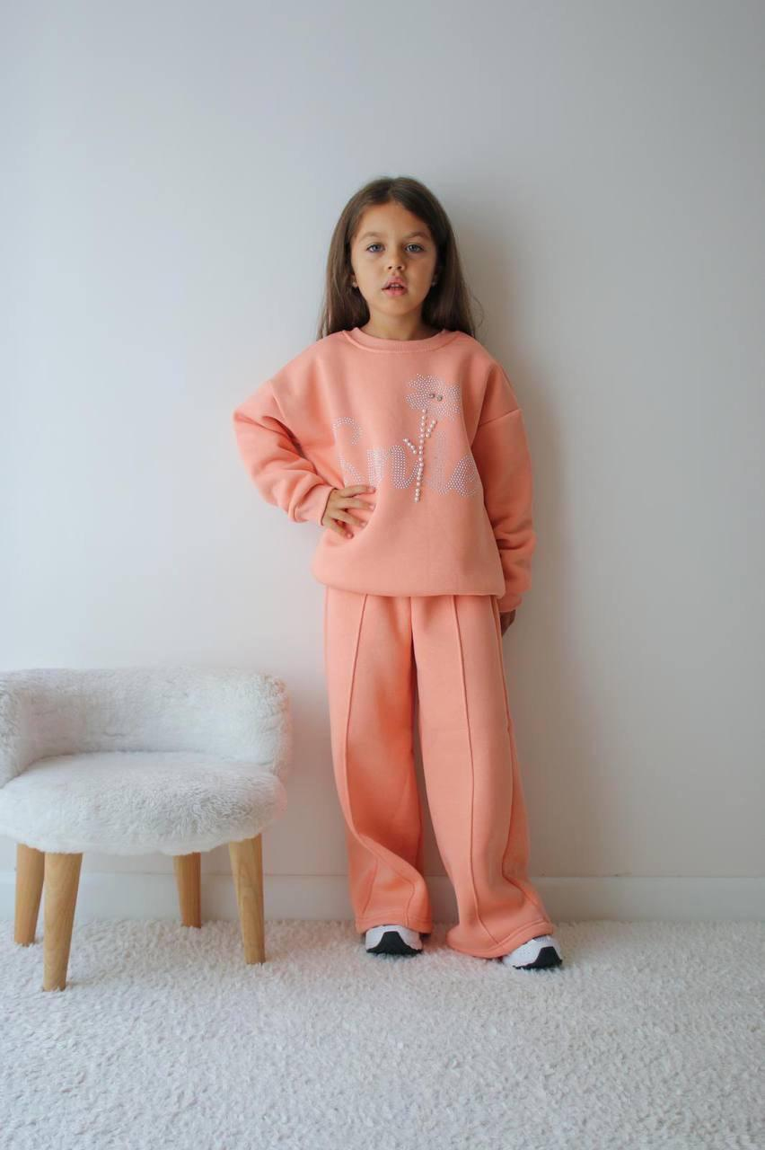 6364 Taş Boncuk İşlemeli Smıle Yazılı Kız Çocuk Üç İplik Şardonlu Takım-SOMON