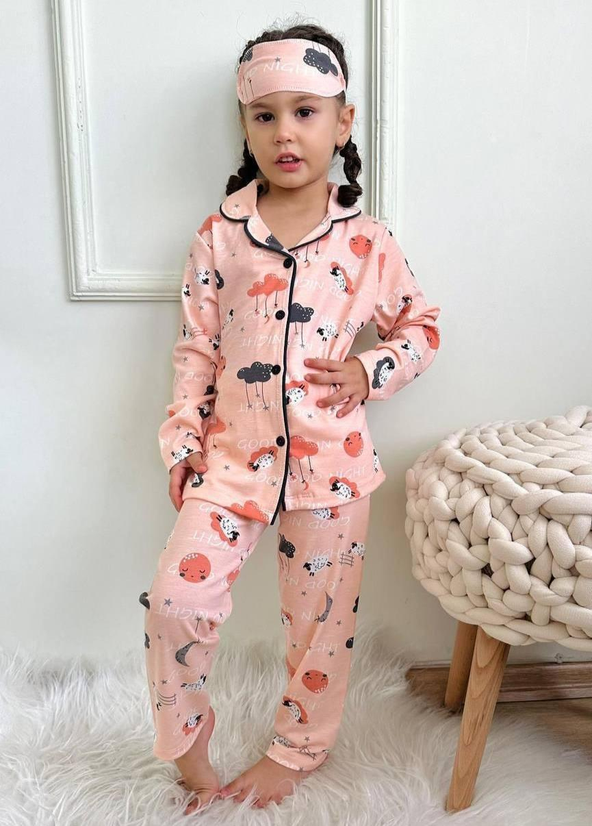 6666-2 Bulut Yıldız Baskılı Kız Çocuk Pijama Takımı-SOMON