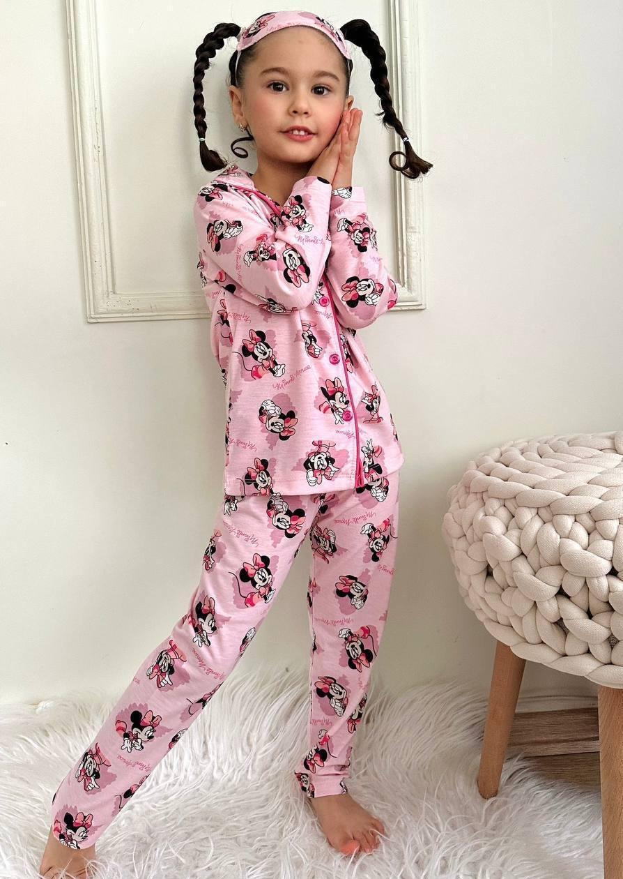 6666-3 Mn Yazılı Baskılı Kız Çocuk Pijama Takımı-PEMBE
