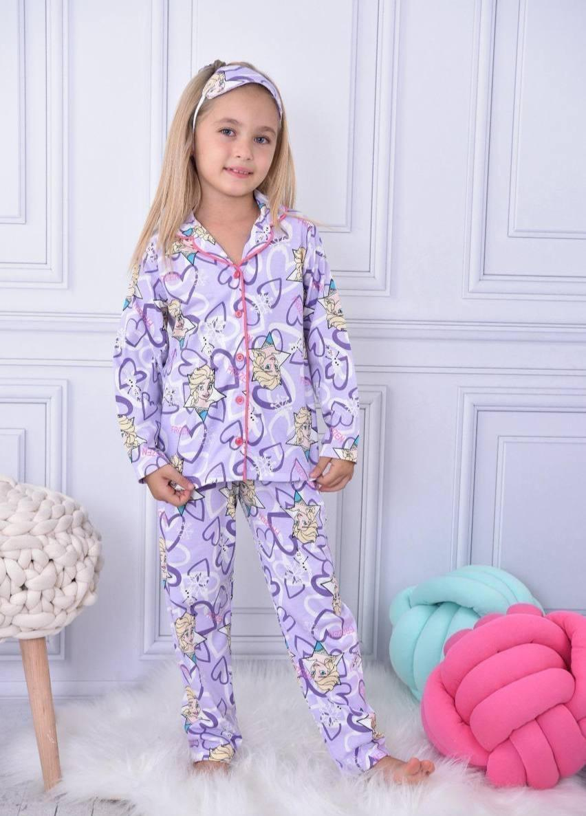 6666-7 Els Baskılı Kız Çocuk Pijama Takım-LİLA