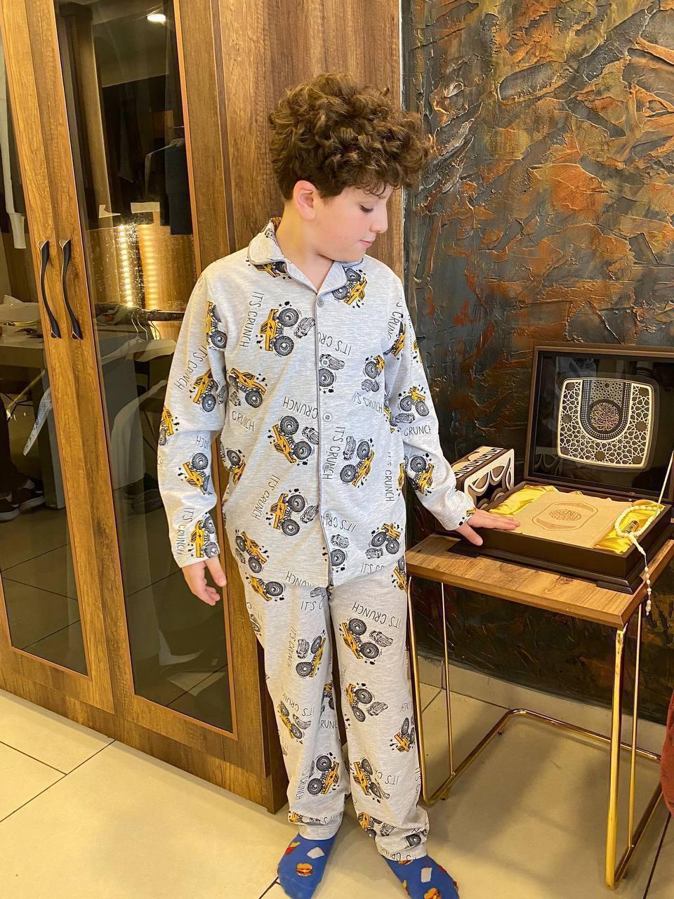 6666 İş Makinesi Baskılı Erkek Çocuk Pijama Takımı-GRİ