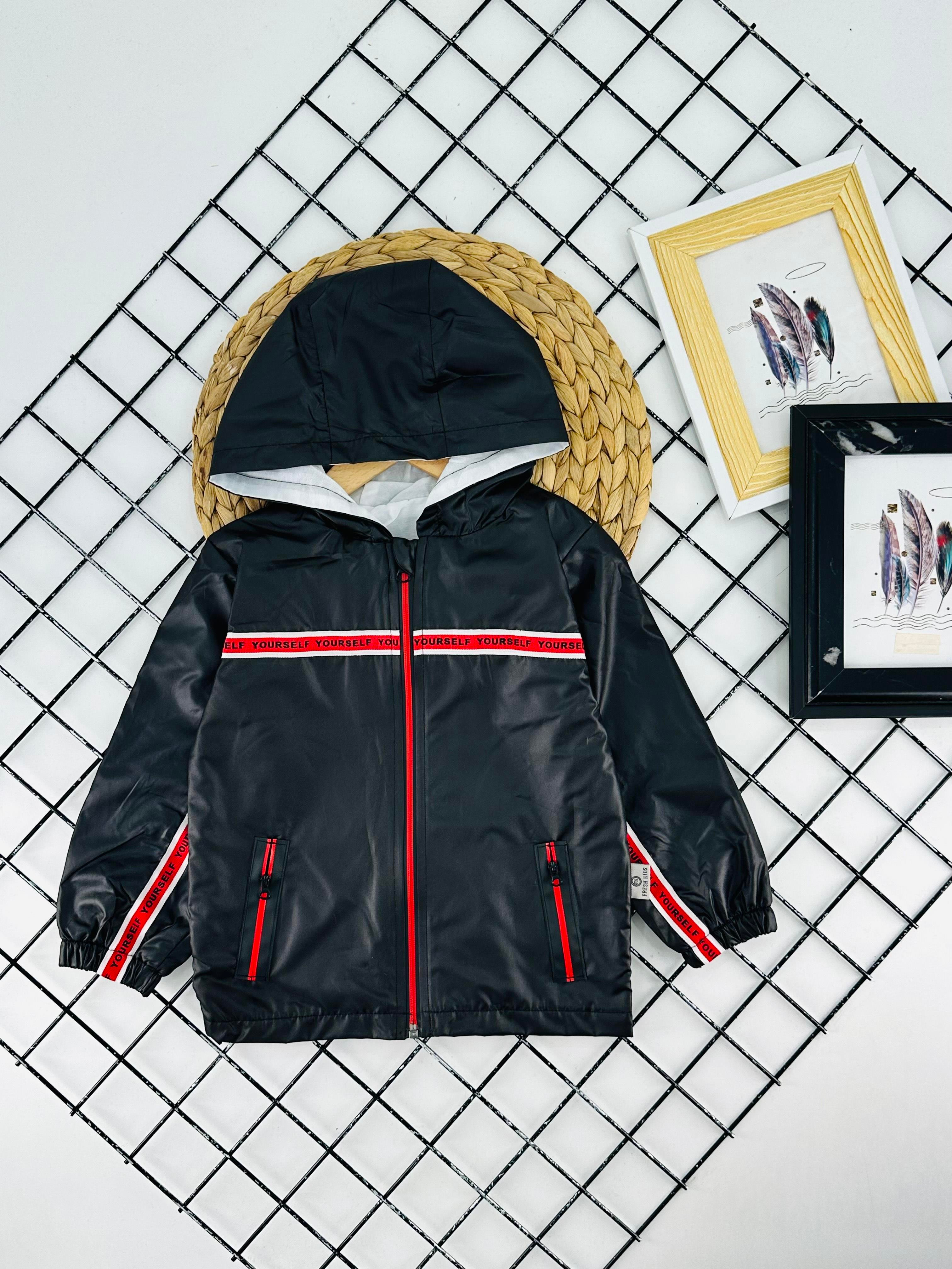 7479 Youself Yazılı Cepli Erkek Çocuk Yağmurluk-SİYAH