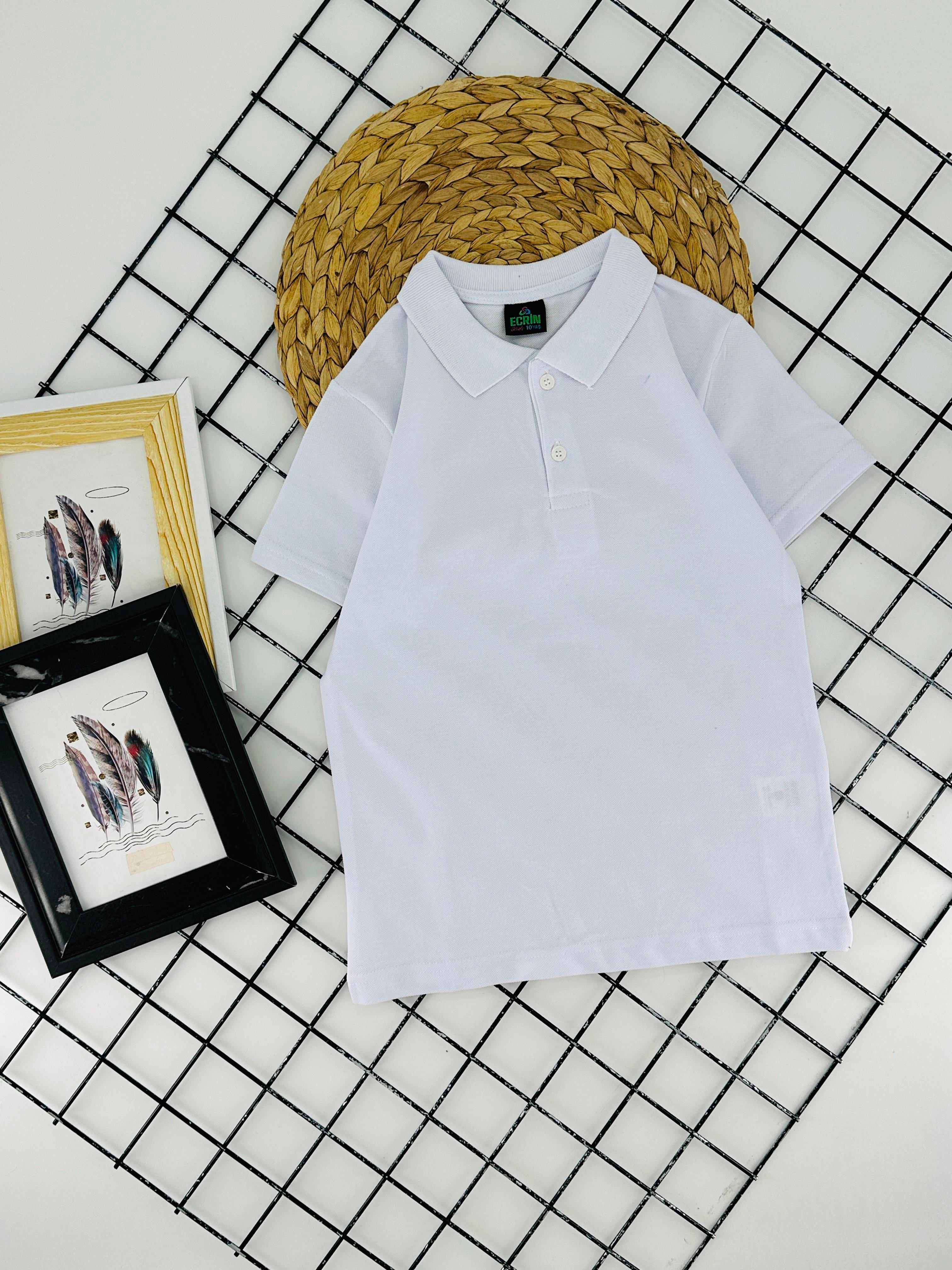 8045 Yakalı Lacost Kumaş Kısa Kol Çocuk Tişört-BEYAZ