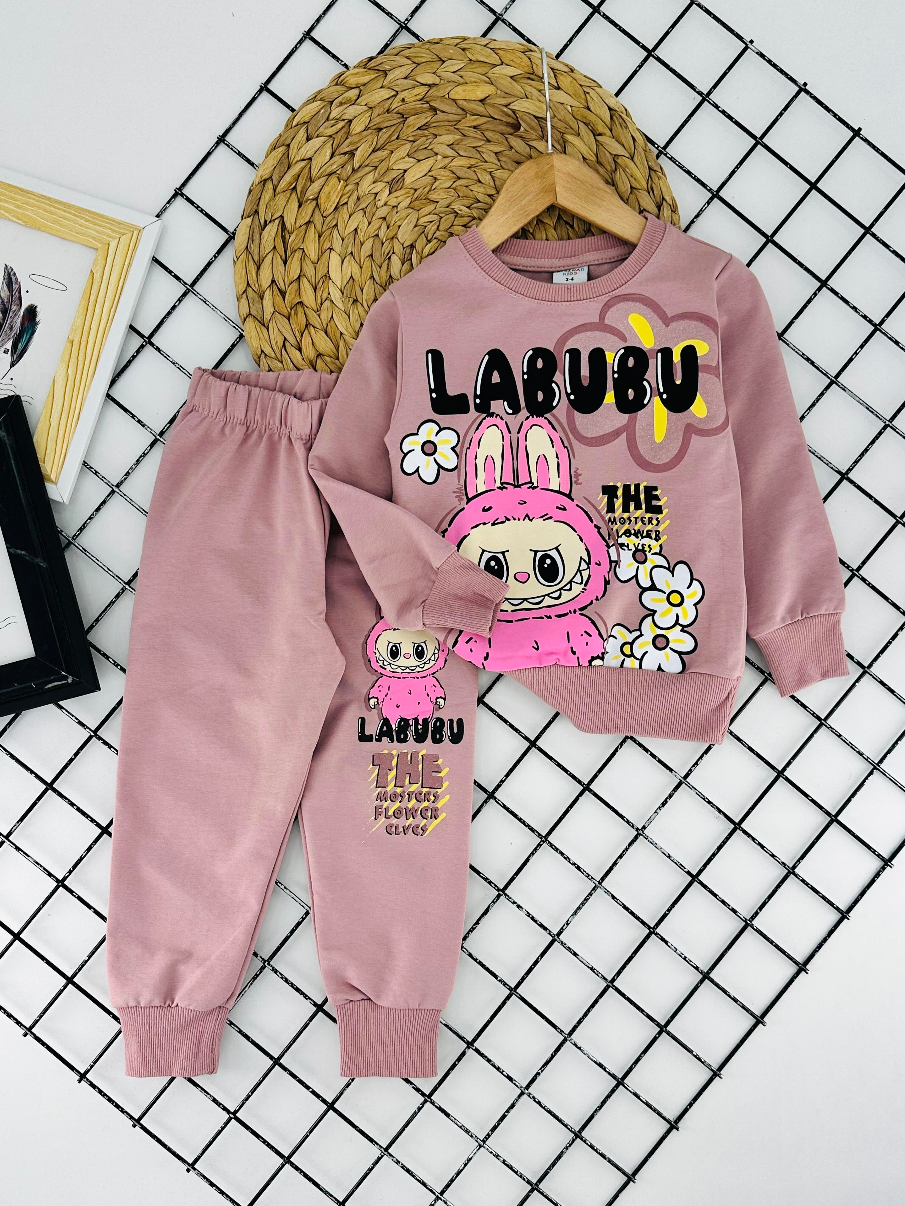 8174 Labubu Yazılı Baskılı İki İp Kız Çocuk Takım-GÜL KURUSU