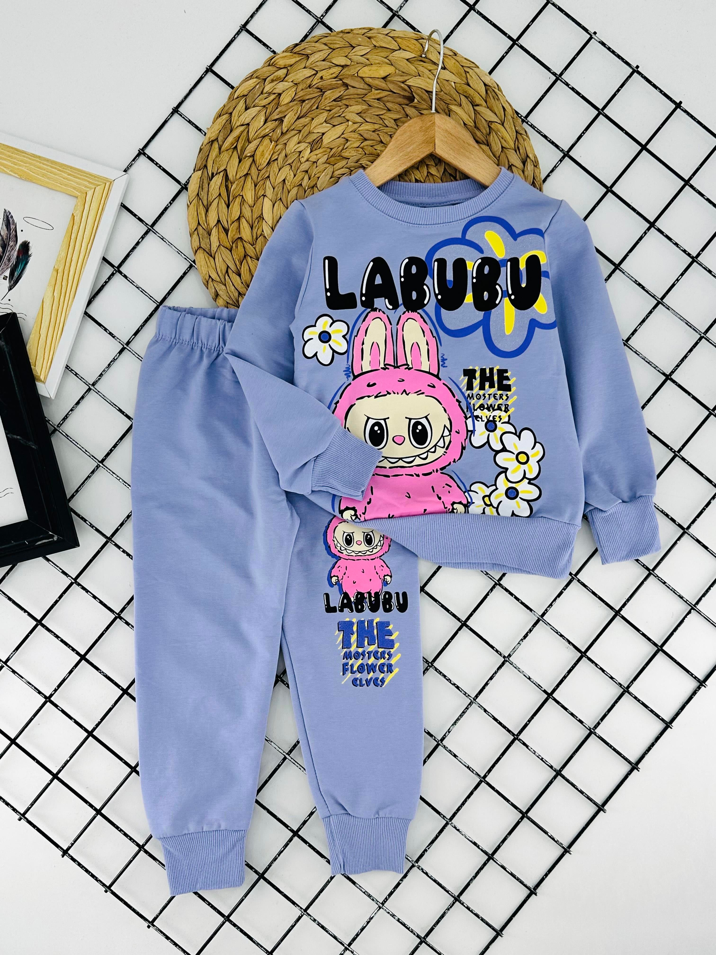 8174 Labubu Yazılı Baskılı İki İp Kız Çocuk Takım-LİLA