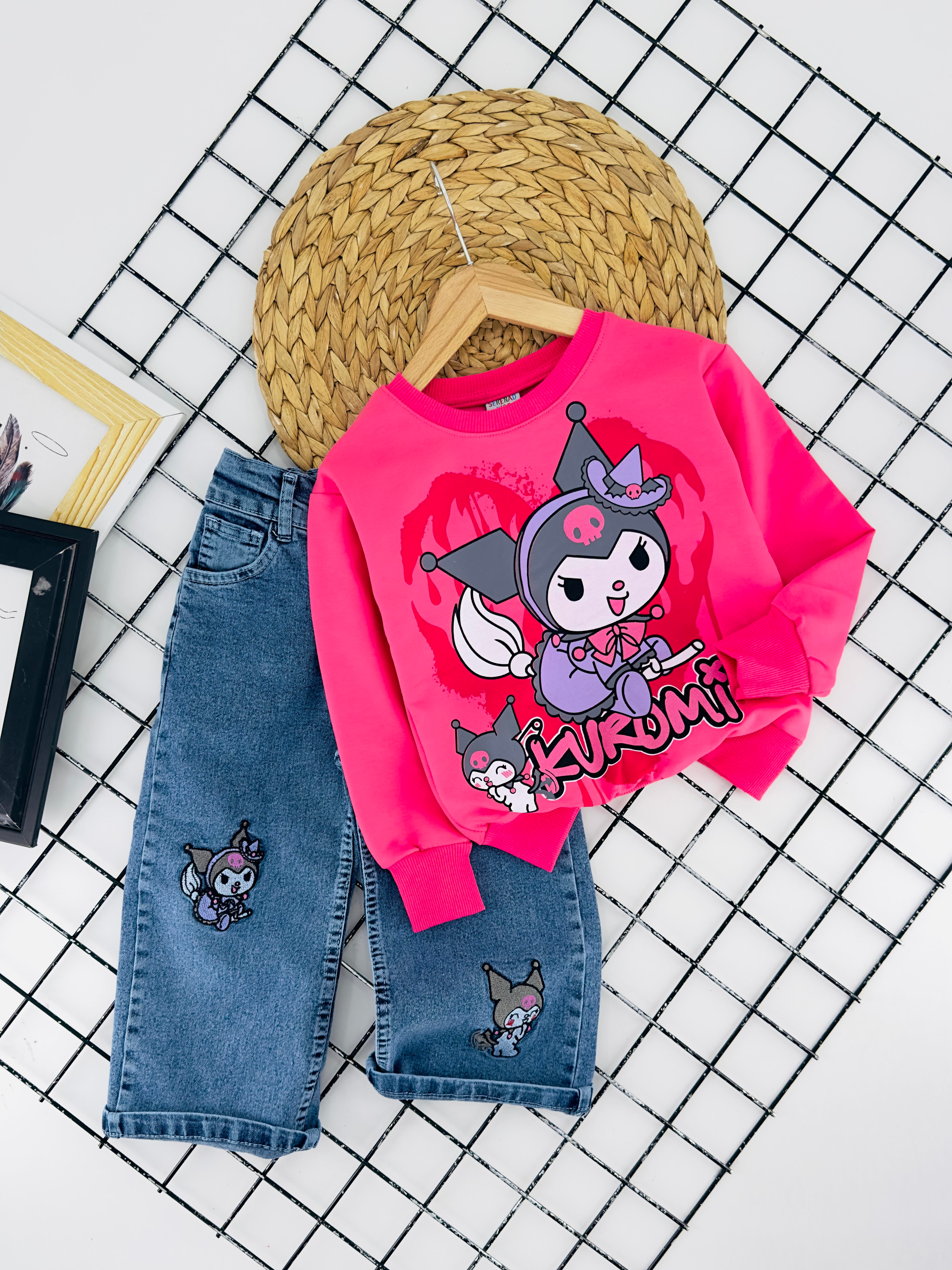 8224 Krm Baskılı Kız Çocuk İki İplik Altı Kotlu Takım-FUŞYA