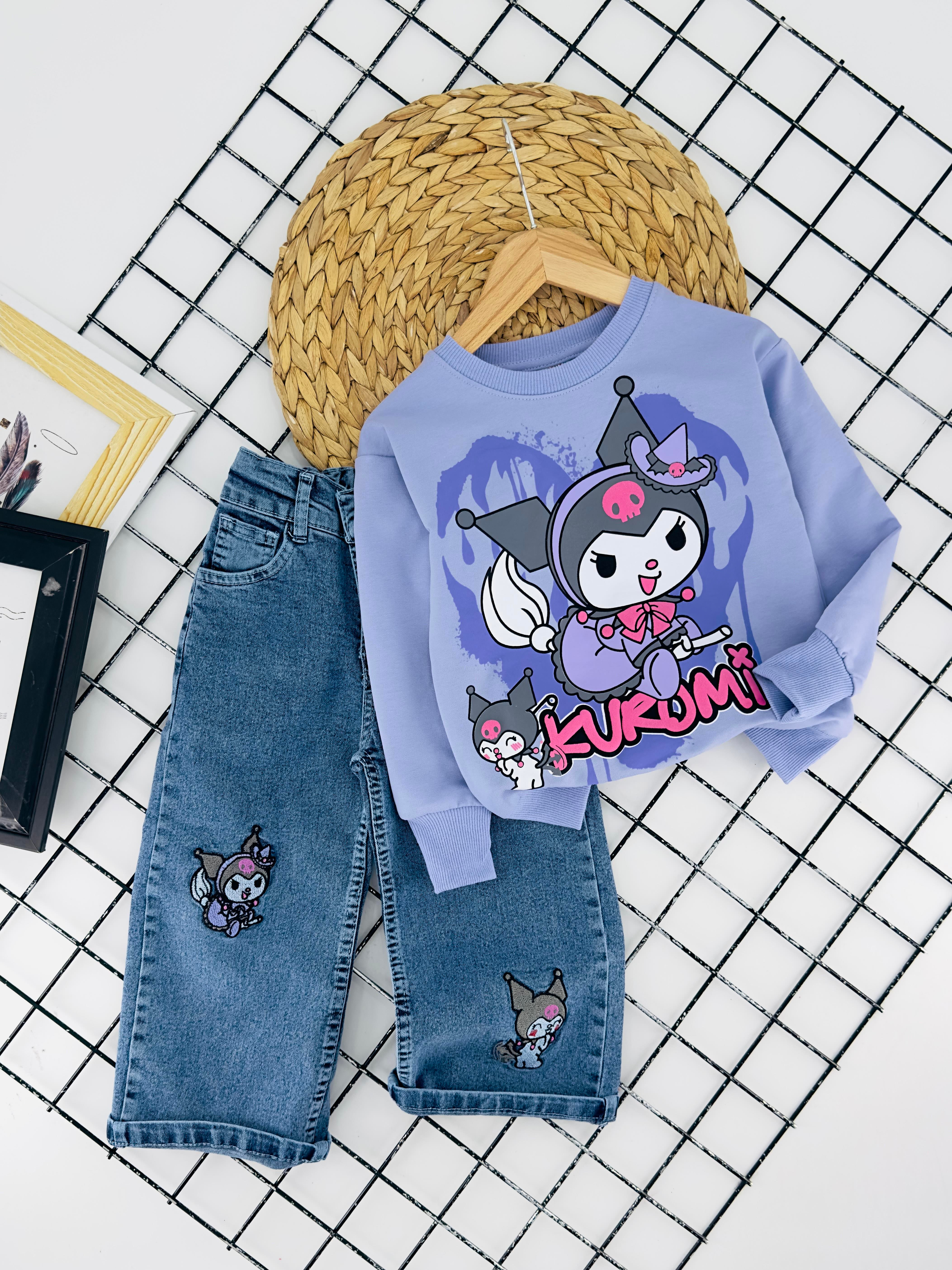 8224 Krm Baskılı Kız Çocuk İki İplik Altı Kotlu Takım-LİLA