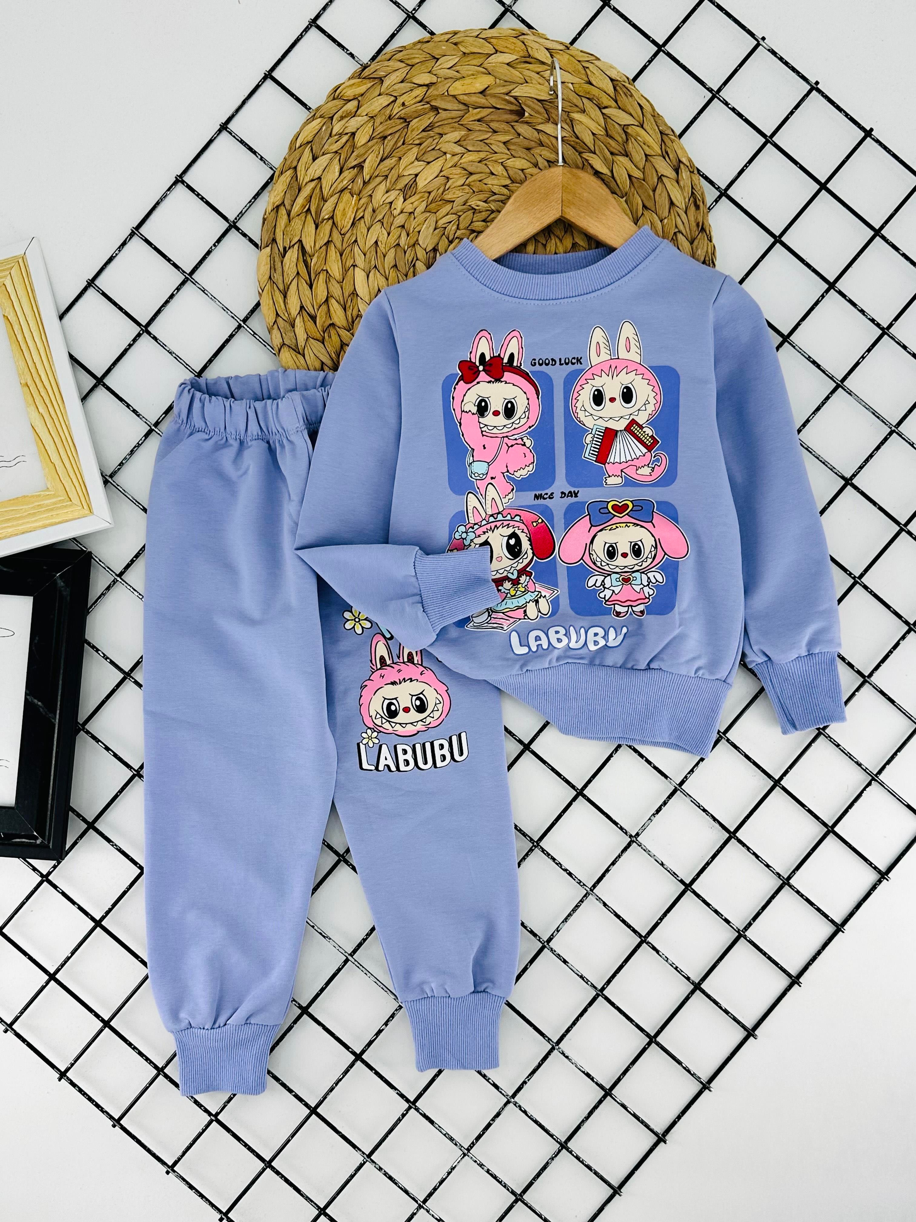 8227 İkili Labubu Baskılı Kız Çocuk İki İp Takım-LİLA