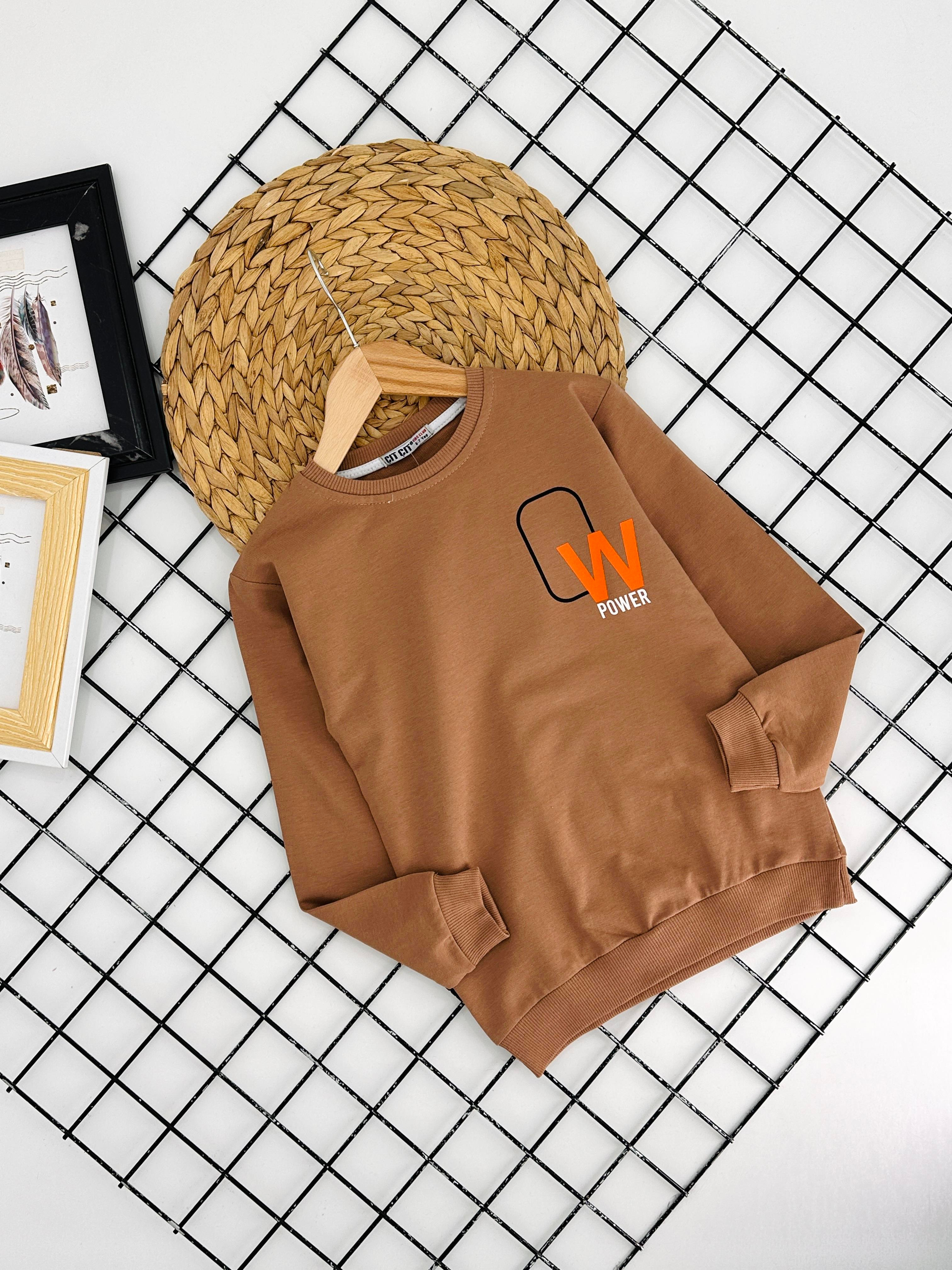 8373 W Power Yazılı Erkek Çocuk Sweat-KAHVE