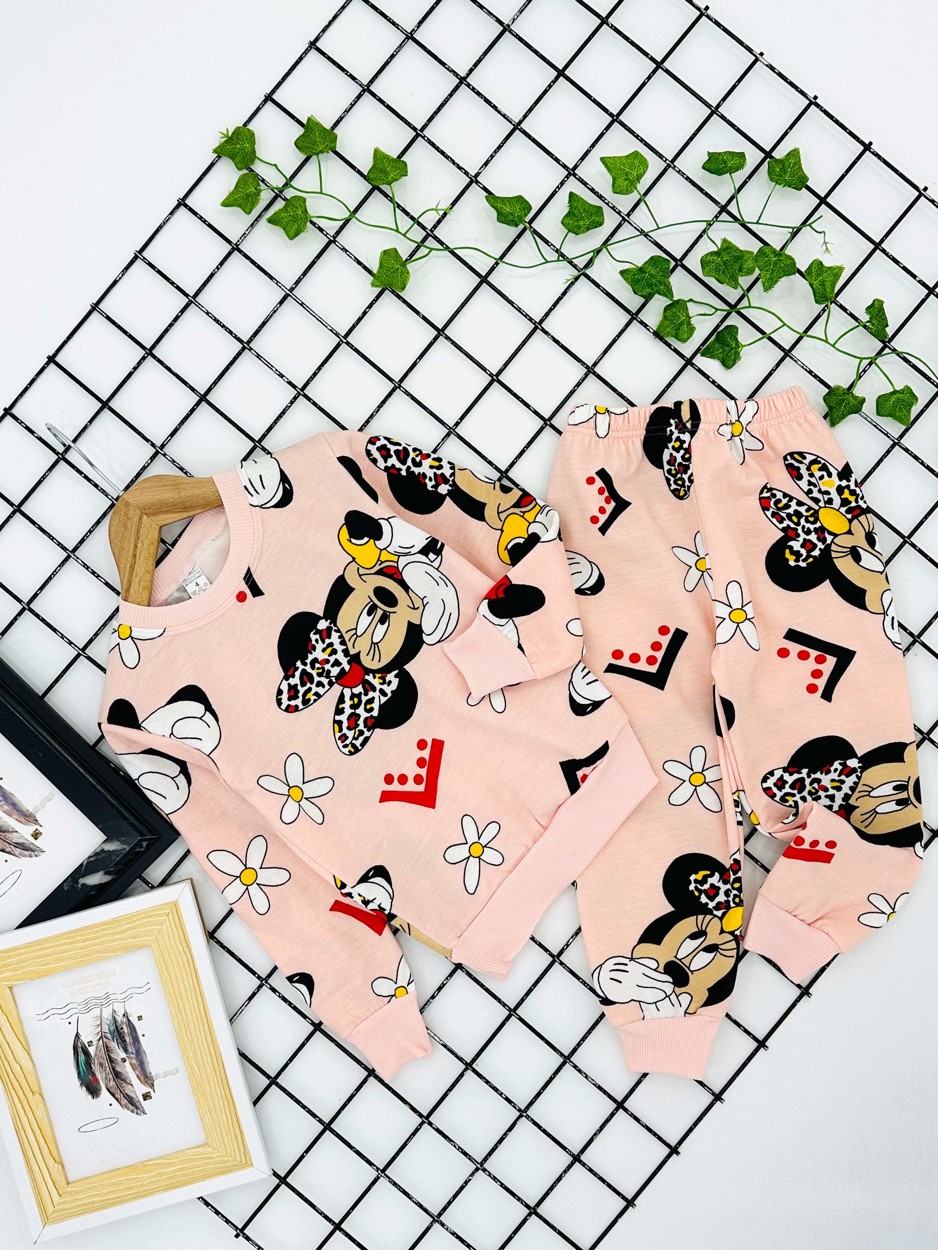 8500-17 Miki Desen Kız Çocuk Şardonlu Pijama Takım (3-7 Yaş)-PEMBE