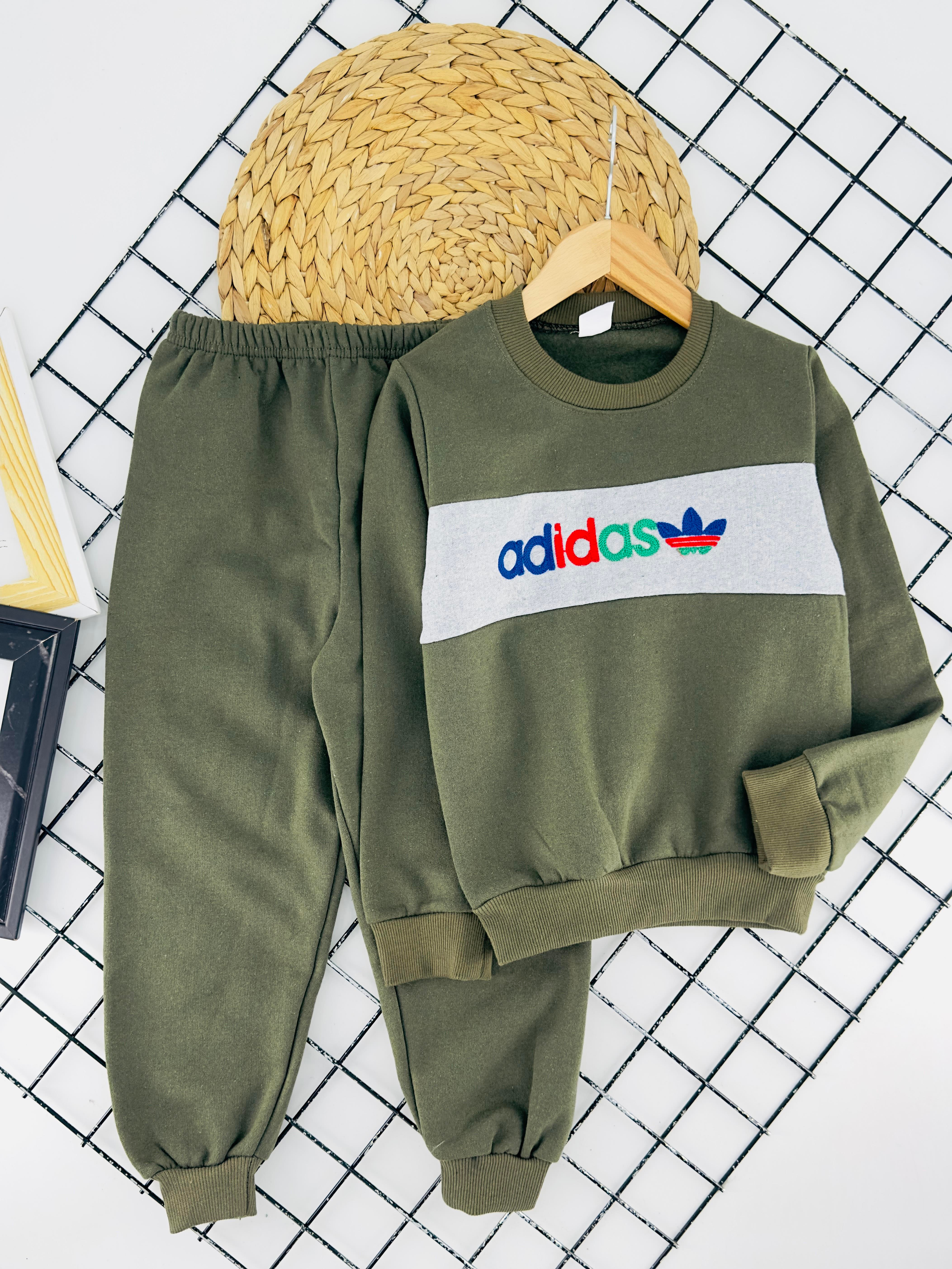 900-2 Adds Yazılı Nakışlı Erkek Çocuk İki İplik Şardonlu Takım-HAKİ YEŞİLİ