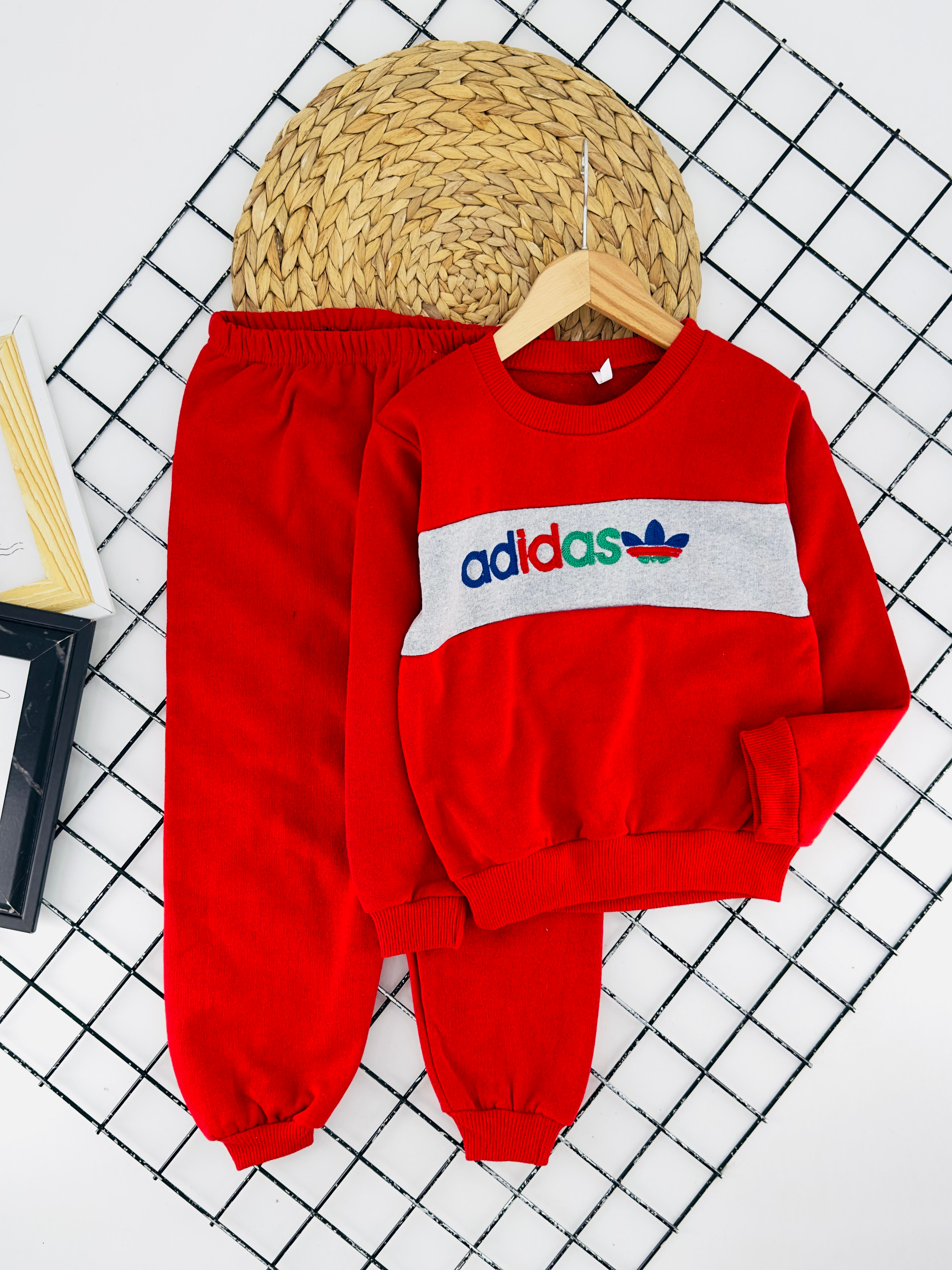 900-2 Adds Yazılı Nakışlı Erkek Çocuk İki İplik Şardonlu Takım-KIRMIZI