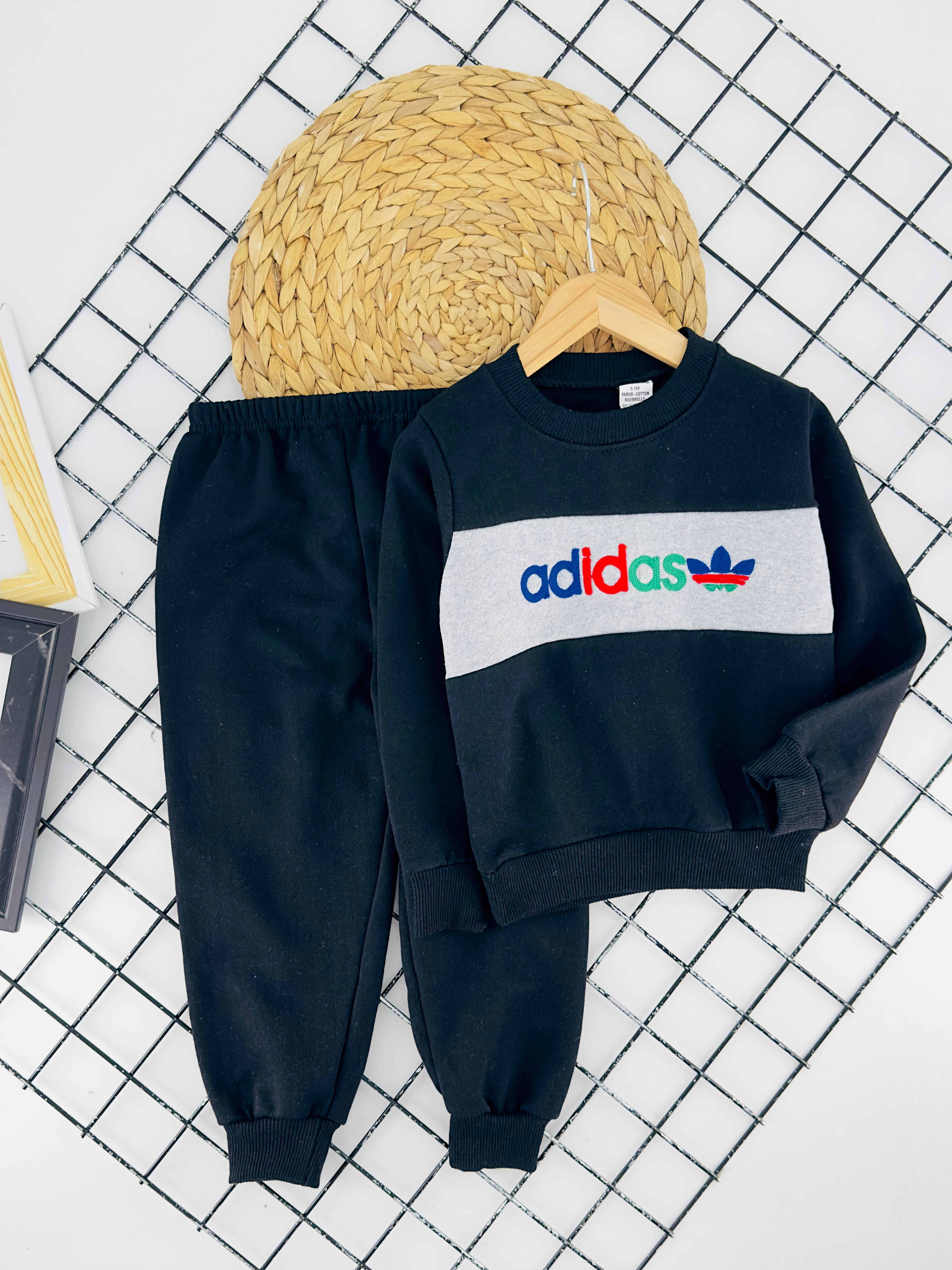 900-2 Adds Yazılı Nakışlı Erkek Çocuk İki İplik Şardonlu Takım-LACİVERT