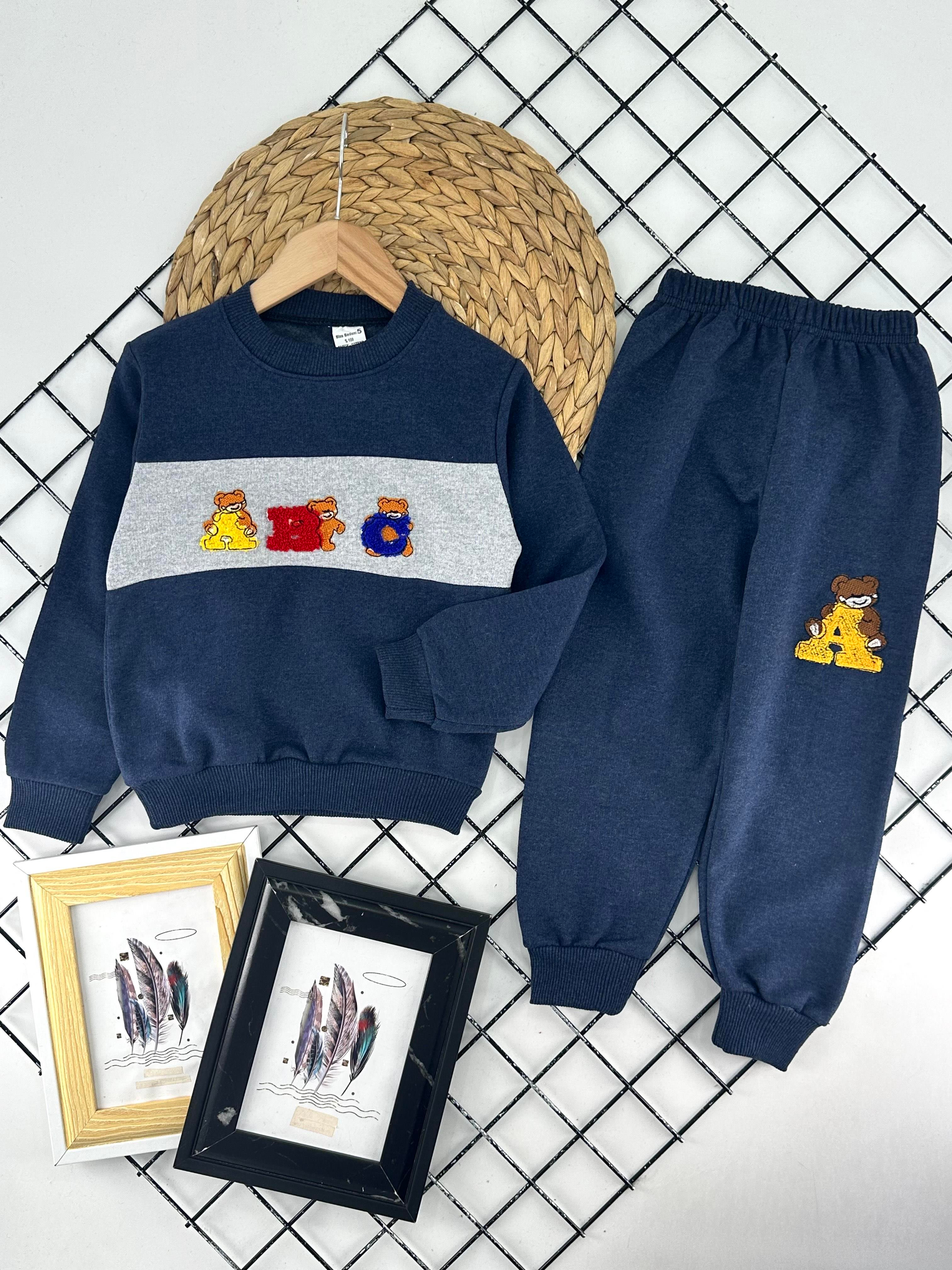 900-3 Abc Yazılı Nakışlı Erkek Çocuk İki İplik Şardonlu Takım-İNDİGO MAVİ