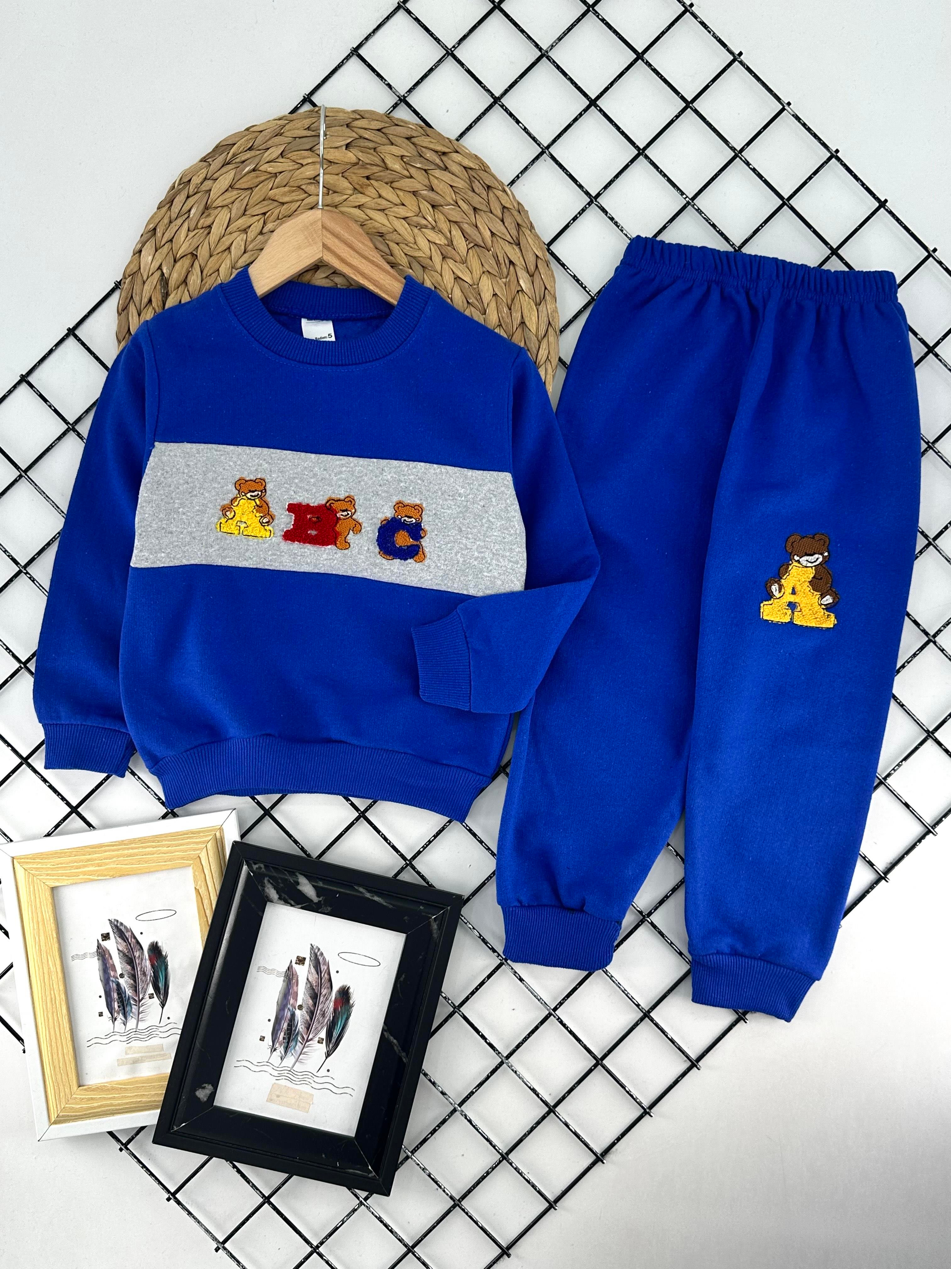 900-3 Abc Yazılı Nakışlı Erkek Çocuk İki İplik Şardonlu Takım-SAKS MAVİ
