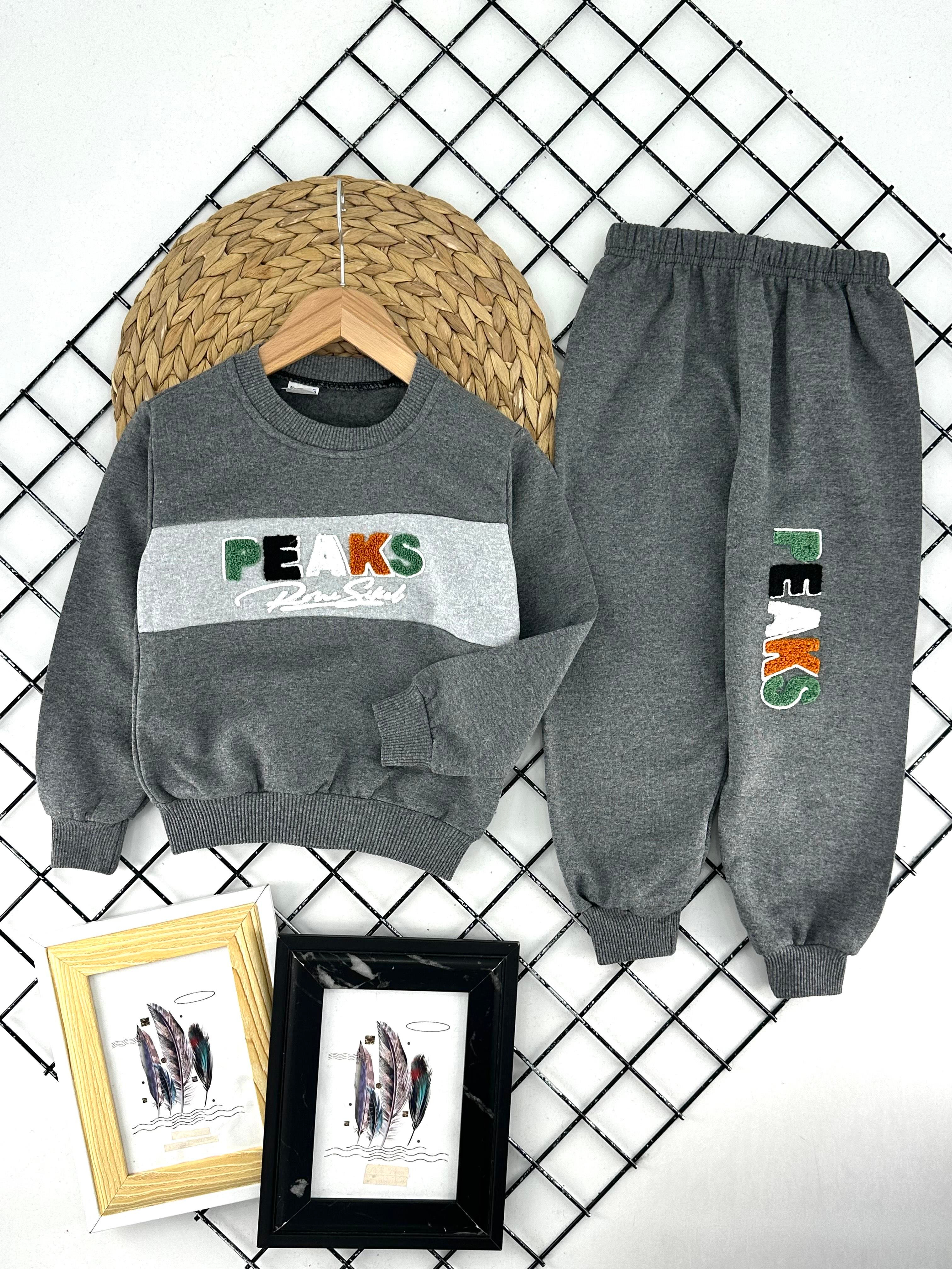 900-4 Peaks Nakışlı Erkek Çocuk İki İplik Şardonlu Takım-ANTRASİT