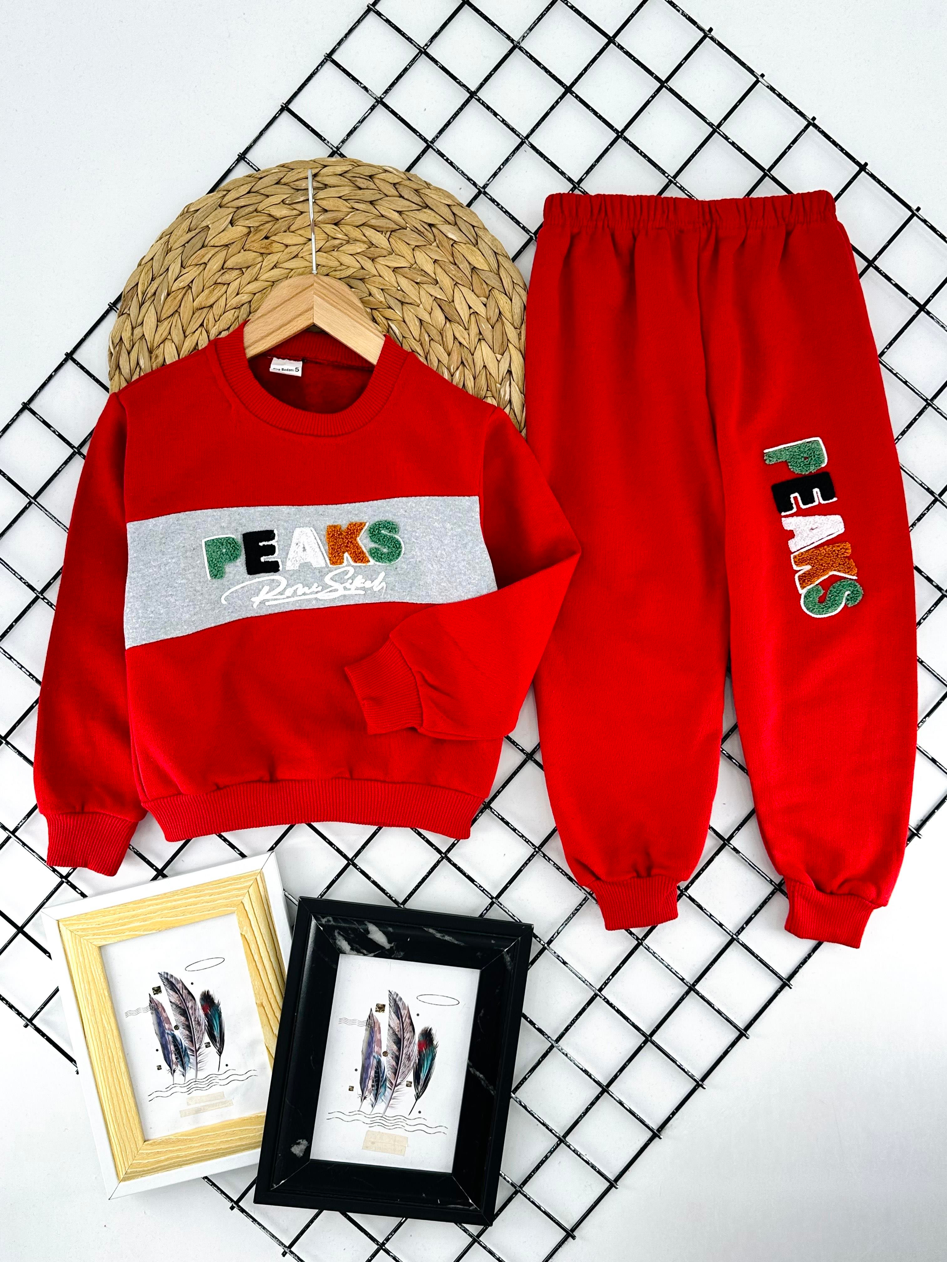 900-4 Peaks Nakışlı Erkek Çocuk İki İplik Şardonlu Takım-KIRMIZI