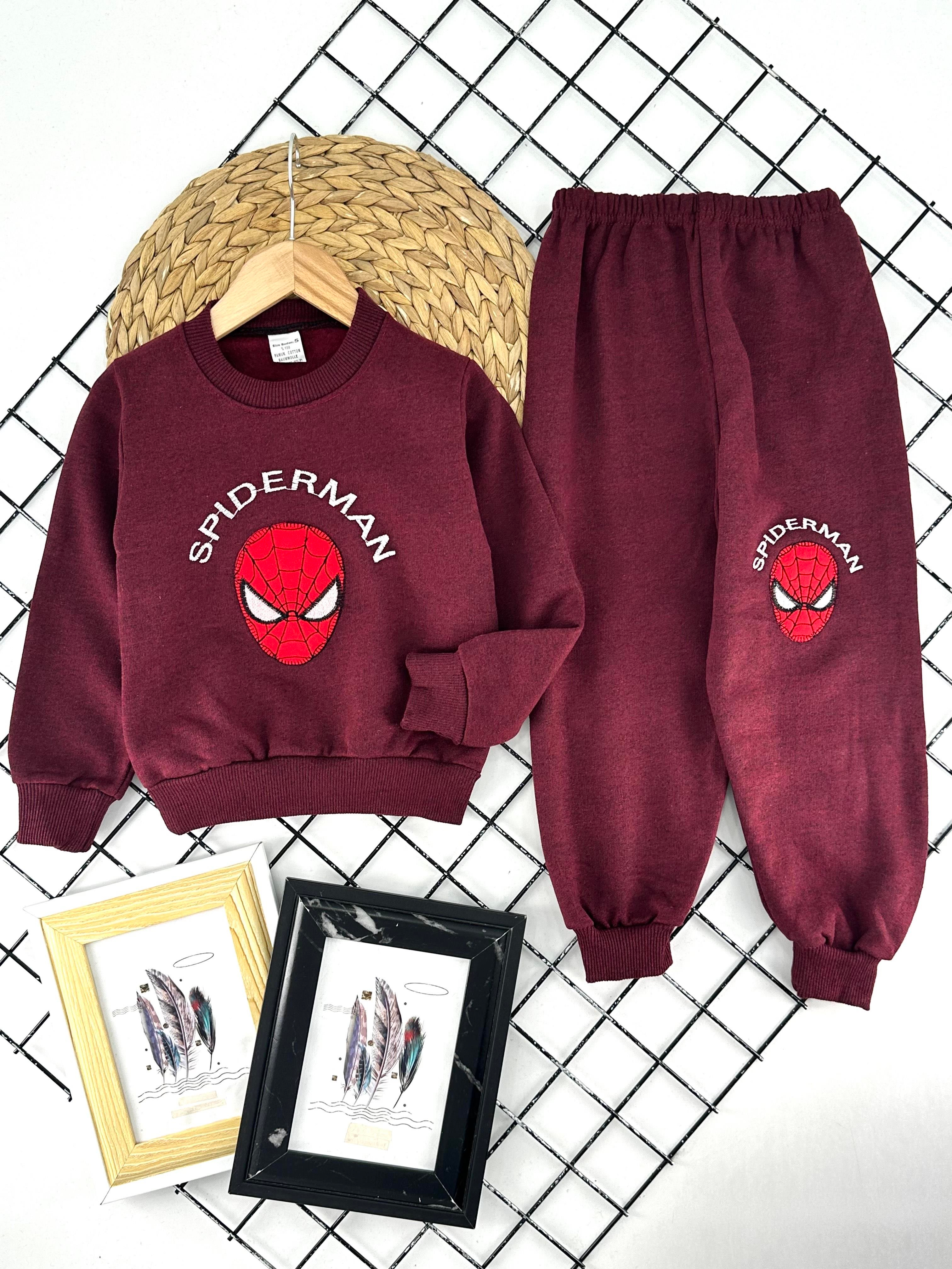 900-5 Spdrmn Yazılı Nakışlı Erkek Çocuk İki İplik Şardonlu Takım-BORDO