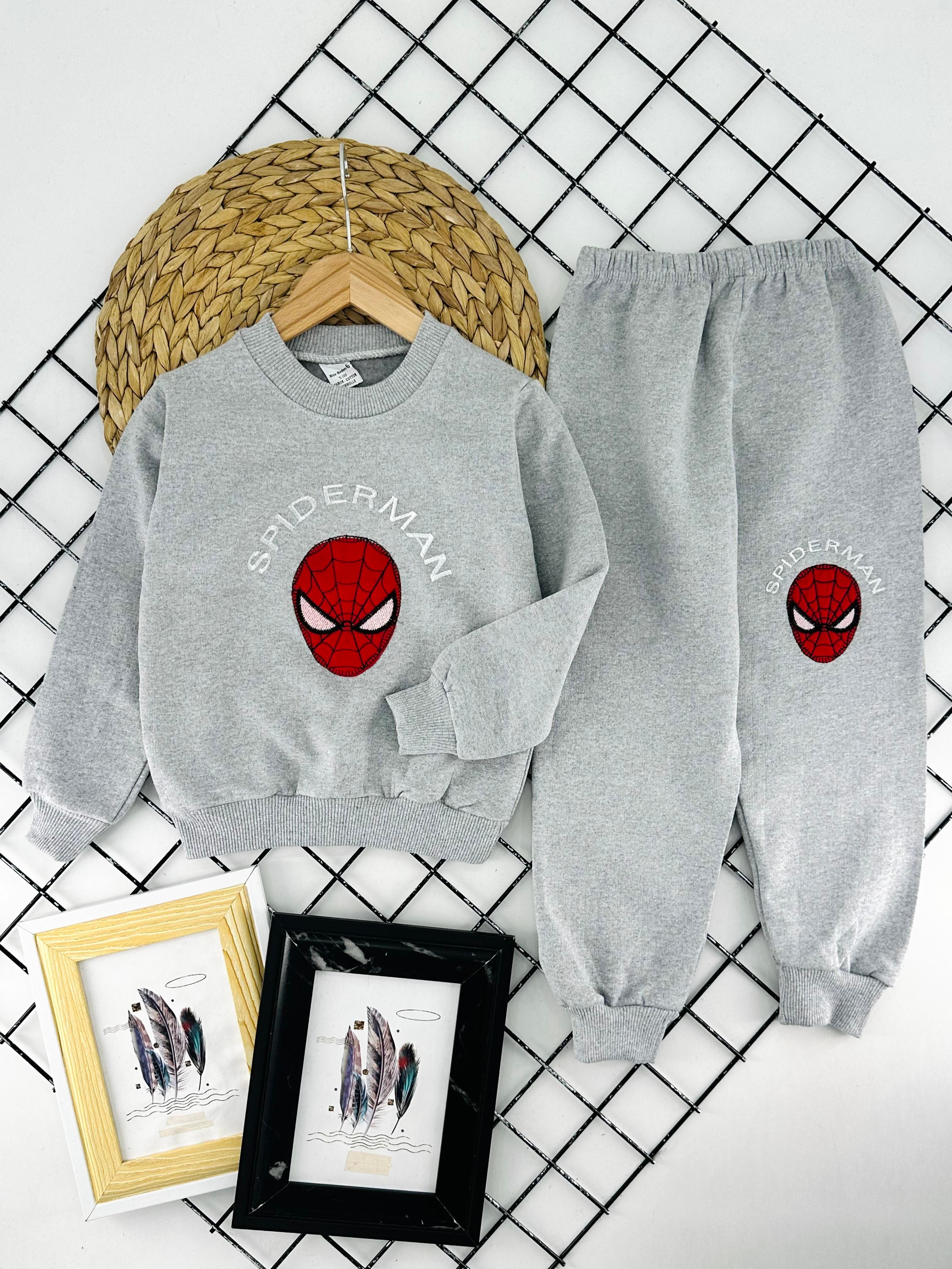 900-5 Spdrmn Yazılı Nakışlı Erkek Çocuk İki İplik Şardonlu Takım-GRİ