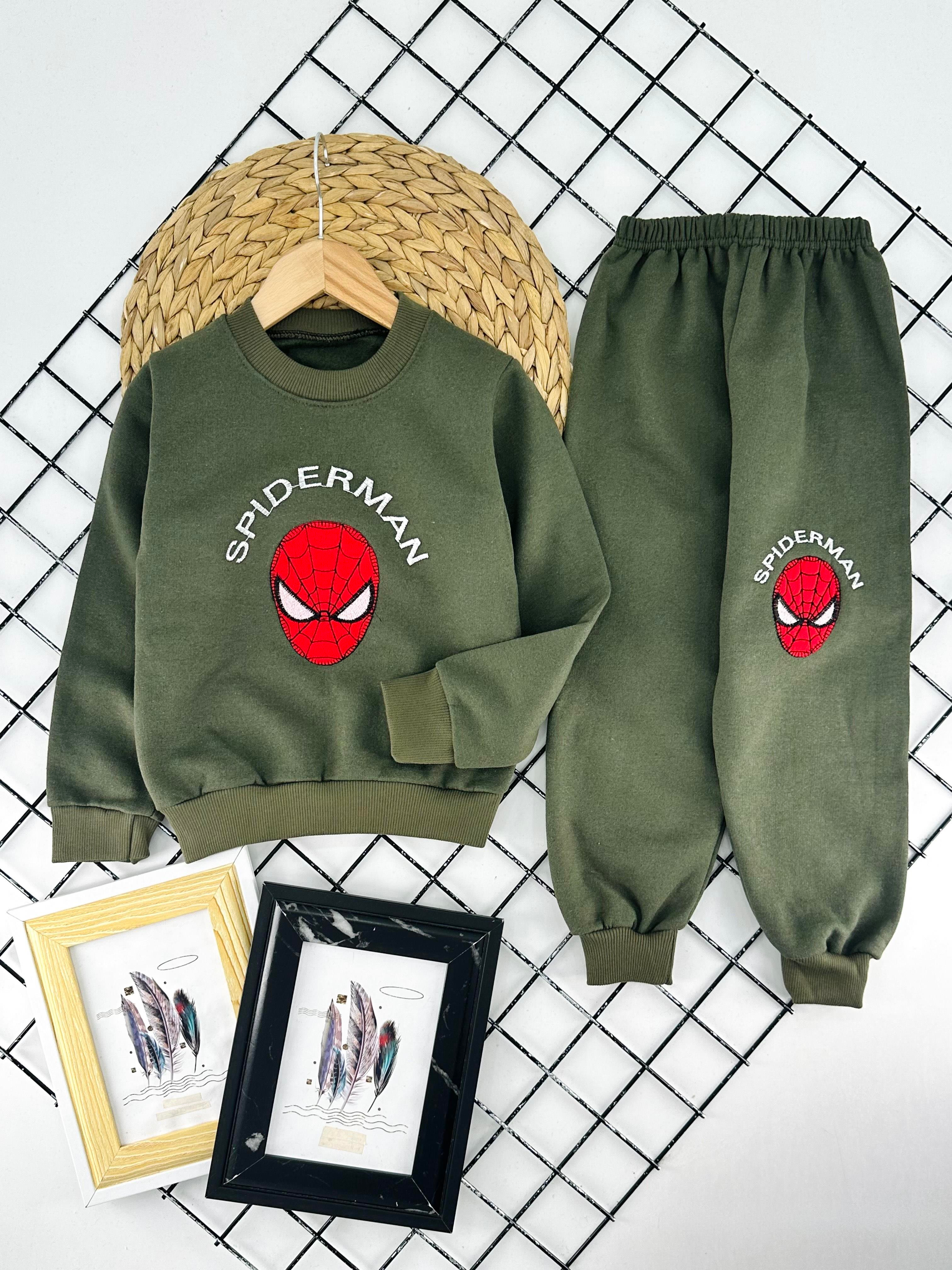 900-5 Spdrmn Yazılı Nakışlı Erkek Çocuk İki İplik Şardonlu Takım-HAKİ YEŞİLİ