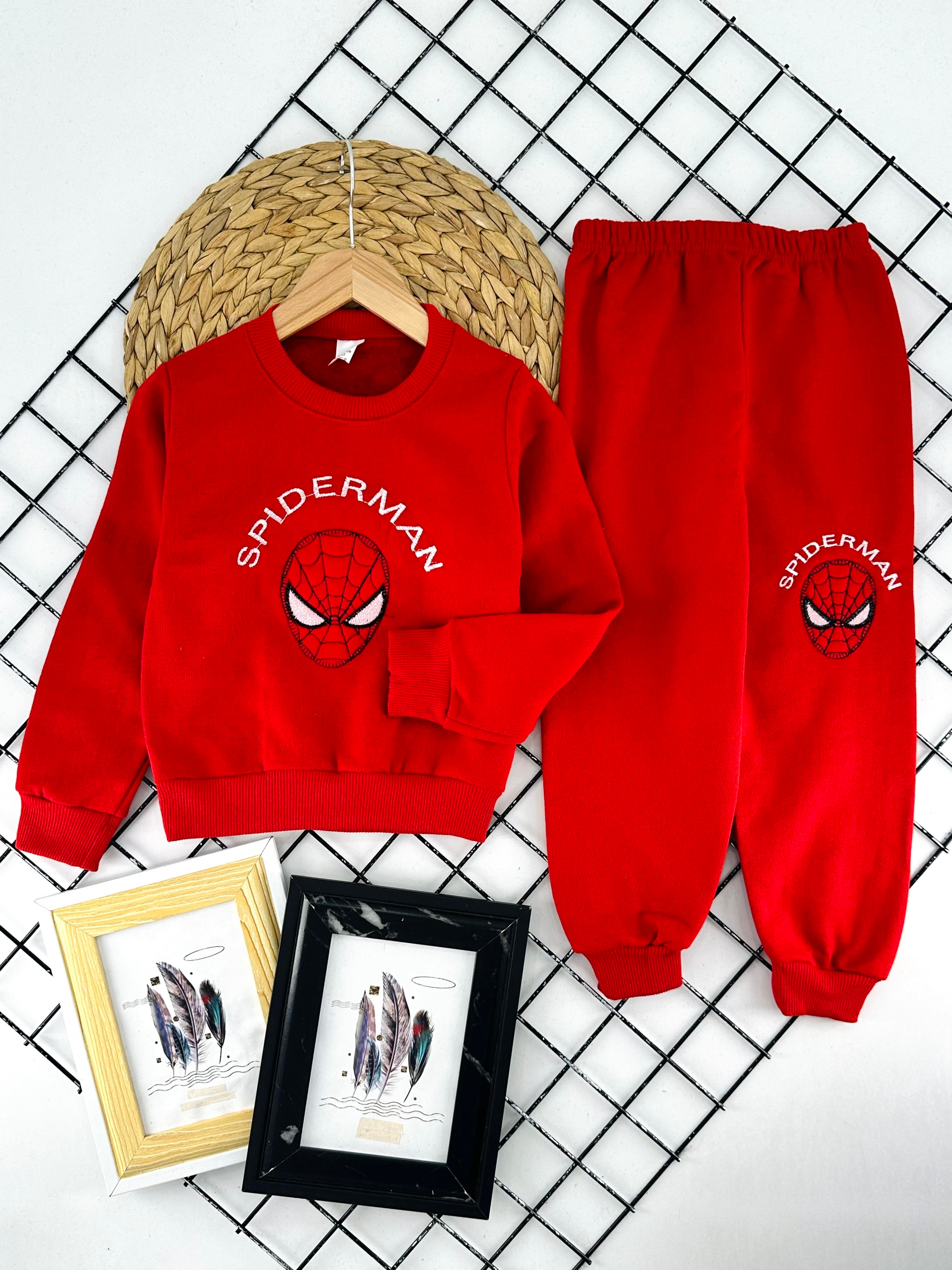 900-5 Spdrmn Yazılı Nakışlı Erkek Çocuk İki İplik Şardonlu Takım-KIRMIZI