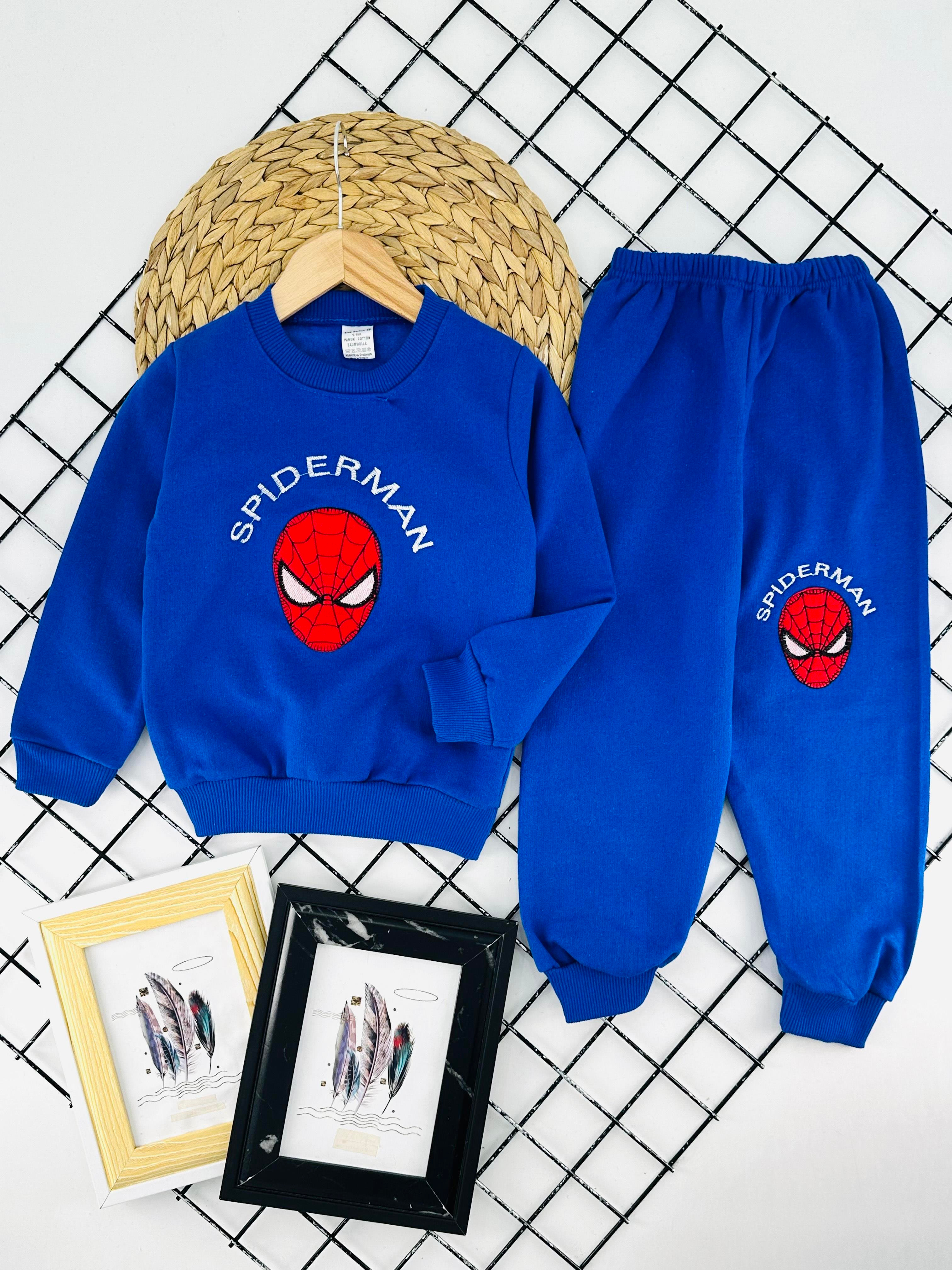 900-5 Spdrmn Yazılı Nakışlı Erkek Çocuk İki İplik Şardonlu Takım-SAKS MAVİ