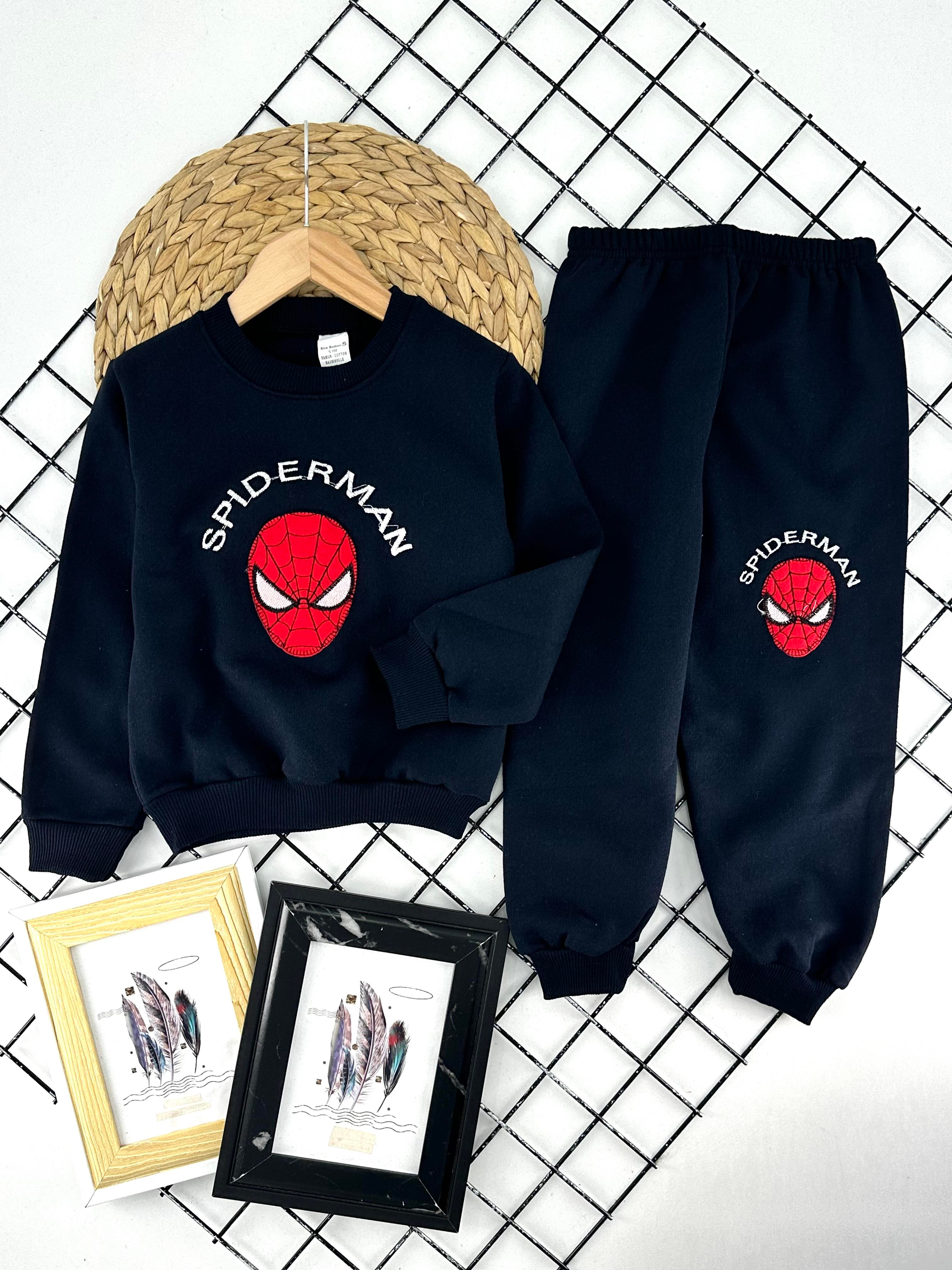 900-5 Spdrmn Yazılı Nakışlı Erkek Çocuk İki İplik Şardonlu Takım-SİYAH