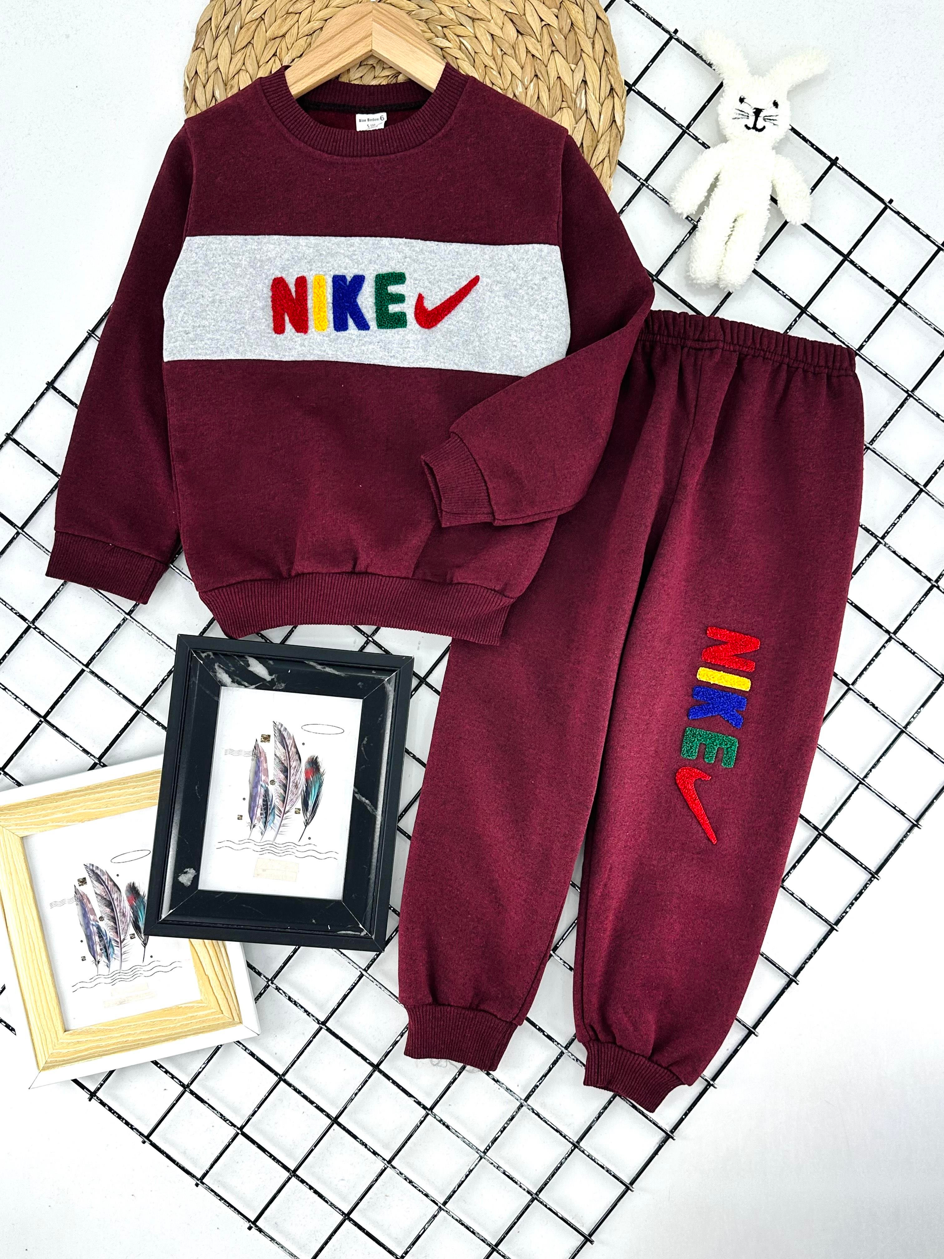 900-6 Nk Yazılı Nakışlı Erkek Çocuk İki İplik Şardonlu Takım-BORDO