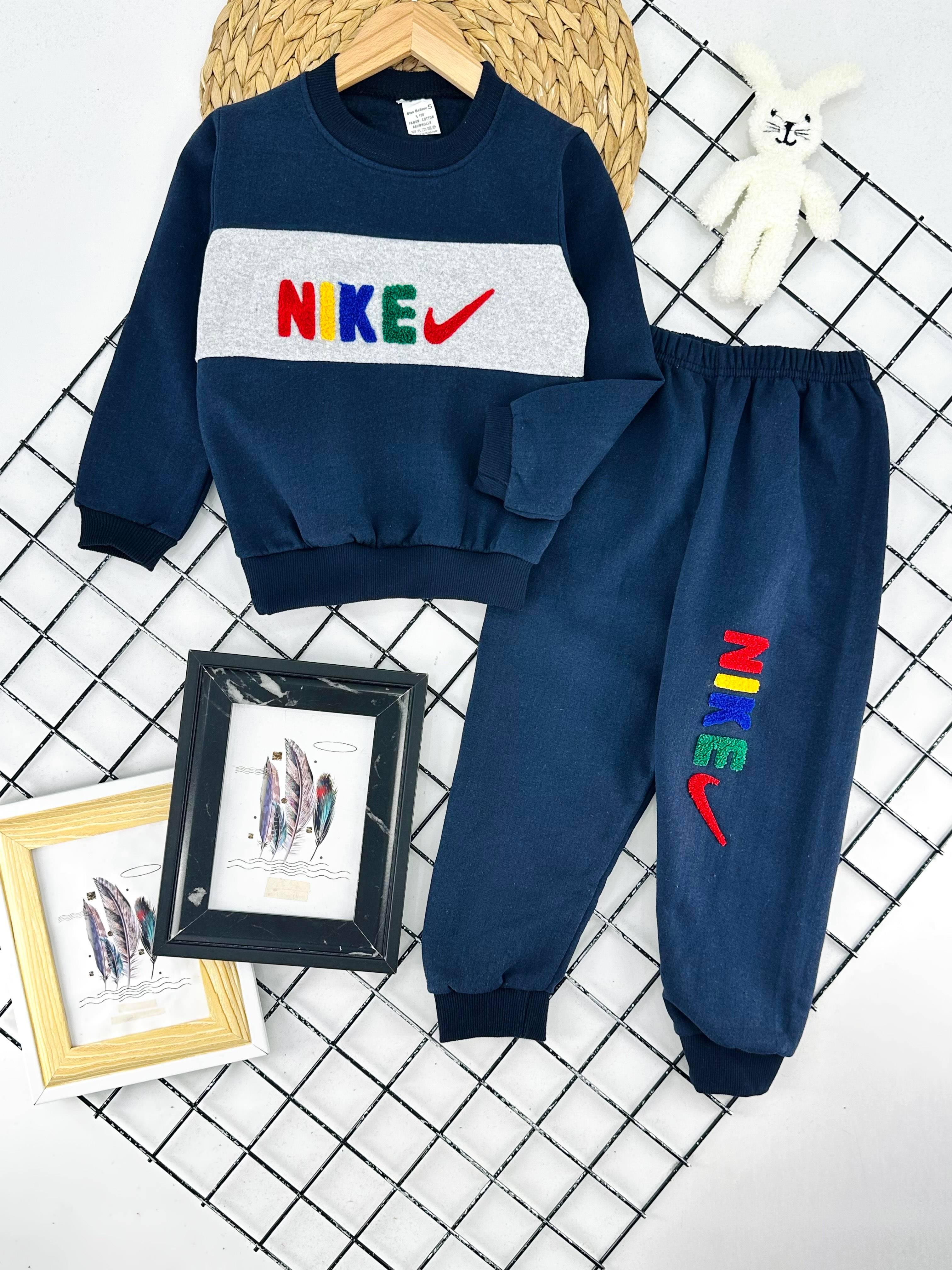 900-6 Nk Yazılı Nakışlı Erkek Çocuk İki İplik Şardonlu Takım-LACİVERT
