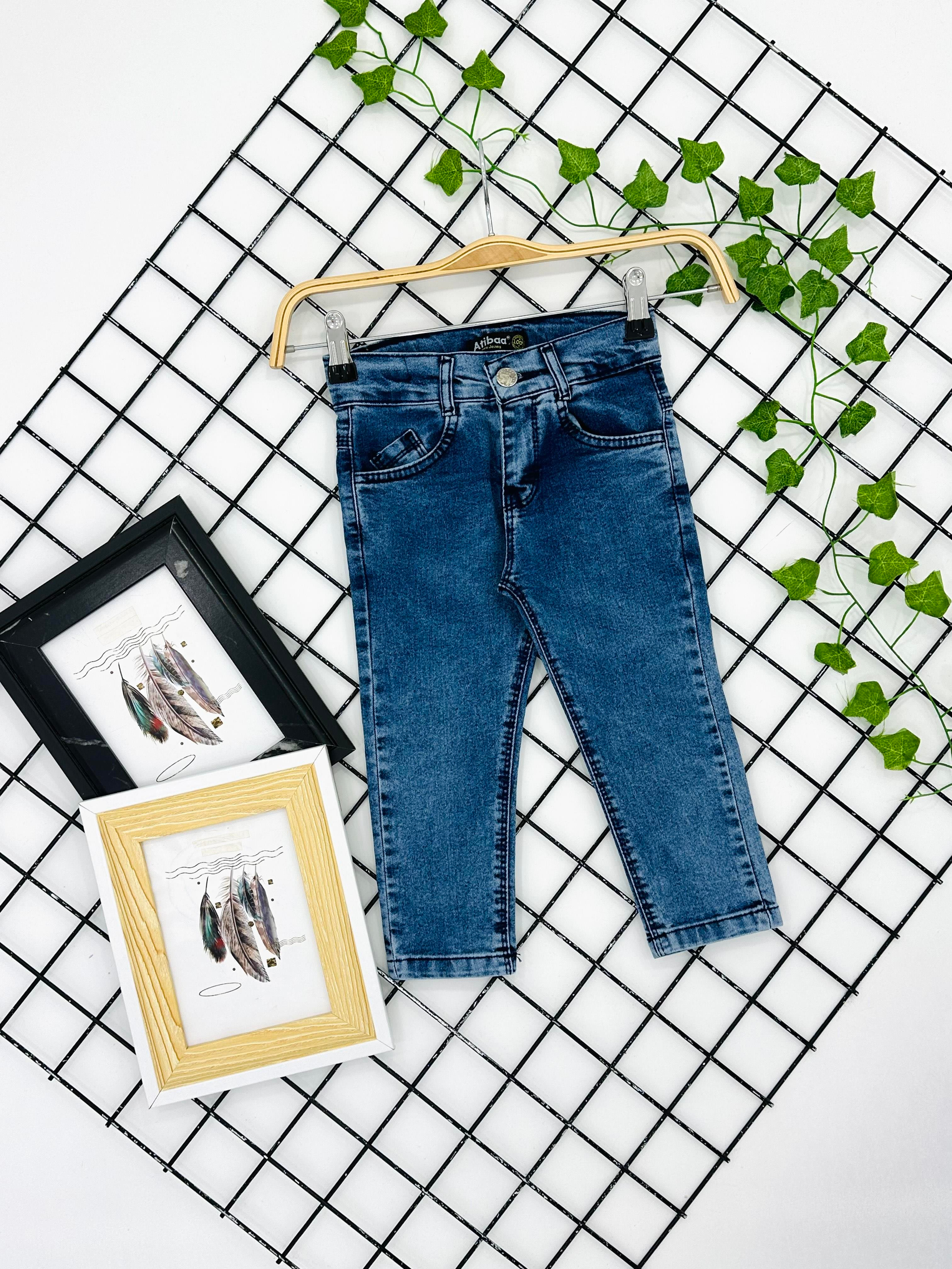 9233 Kız Çocuk Licralı Dar Paça Kot Pantolon-KOYU MAVİ